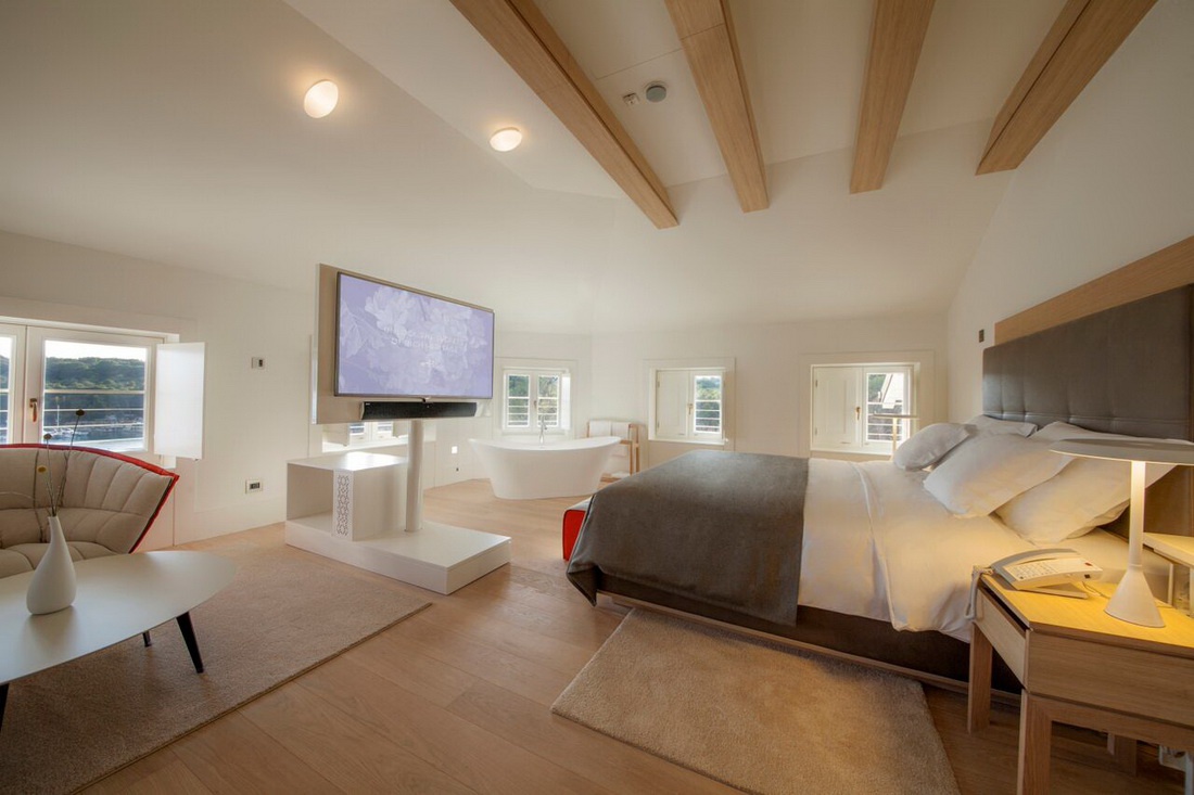 Наповнений природним денним освітленням, розкішний люкс Hortensia Master займає 62 квадратних метри, а також балкон із приголомшливим видом на затоку Чикат. У цьому чудово оформленому люксі є три елегантно оформлені двомісні кімнати (Гортензія, Віола та Ірис) з дерев'яною підлогою, підігрівом підлоги та ванними кімнатами з унікальною кам'яною підлогою, а також набором високоякісних зручностей.