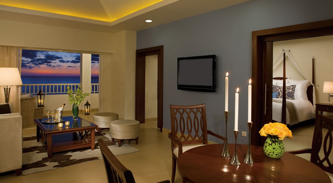 Полулюкс:складається з спальні з королівським розміром або двома королева розміром, вітальні, ванної кімнати, балкона з видом на море.