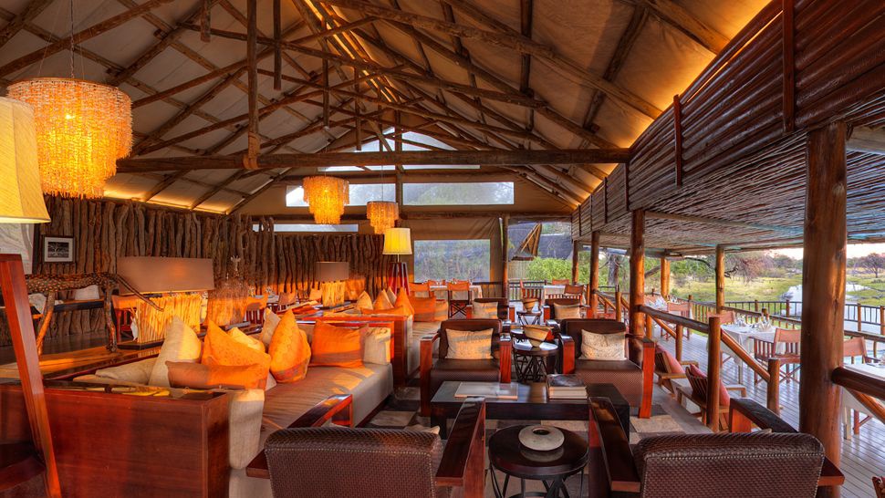 Будинок 12 номерів Розкішні двоспальні наметирозташовані в графіках комфорту на обраній дерев'яній терасі. Чати мають тканинні стінки і широкі вікна, захищені щільними двосторами; під час відновлення наметів були побудовані тротуарні дахи. Природні матеріали використовуються в процесі нумерації: камінь, дерево, причіп і натуральна тканина. Вхід до трансферу - це простий веранди з невеликим оглядом сайту, гамак і стільці, ідеальне місце для романтичної вечері з двома нами. У кожному номері є спальня, міні-host, шафа, ванна кімната з двома раковинами і душовою кабіною. Незвичайний білий лист відокремлюється від міні-host, де є шафа, диван, туалетний столик, журнальний столик і канатне крісло. Печі в тарілках виготовляються з легкої деревини місцевих видів, драпірування тканин з найбільшої натуральної тканини яскравих квітів, підлоги ущільнюються ручними килимами. У всіх числах є картини на річці Чобе та навколишні долини. Гостям пропонують відпочити з улюбленим напоєм.