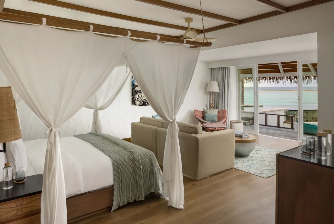 Розташовані над бірюзовою лагуною Канухура, ці водні вілли пропонують панорамний вид на океан і прямий доступ до води.
