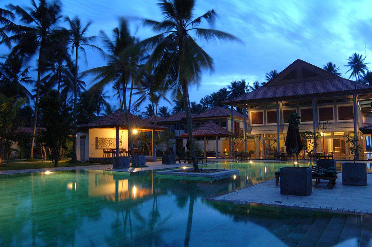 Павільйони Serene Шрі-Ланка знаходиться серед високих коксових пальм і смарагдових ліжок, незбережених пляжів і морських птахів. Готель знаходиться в 15 хвилинах ходьби від готелю. У готелі є лише 12 віллових павільйонів у традиціях Шрі-Ланці та Балі, обладнаних останнім словом техніки. Всі павільйони мають свої власні басейни, а гості пропонуються в особистих номерах. Гостям пропонують відпочити в самому серці СПА, відпочити в басейні з гідромасажними ліжками підводного човна і тенісний корт, насолодитися кулінарними пошуками в ресторані і відпочити на коктейль в затишному барі.