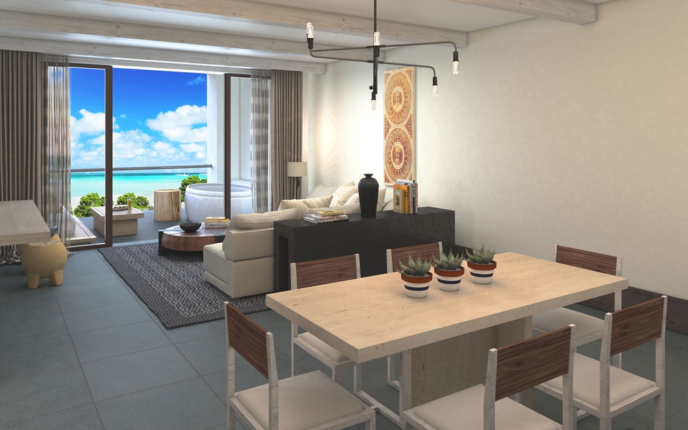 55 квадратних метрів тераси, передній вид на океан, максимальне розміщення, 2 осіб в номері з ліжком розміру King Size і 4 осіб в ліжко розміру королева.