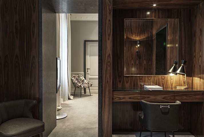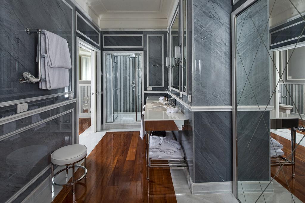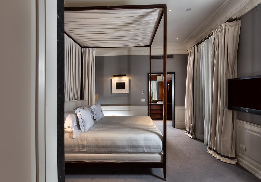 Deluxe Room: 32 м2. Складається зі спальні з ліжком king-size, оббитої тканиною ручної роботи, ванної кімнати з оздобленням з італійського мармуру та душем, гардеробної. За запитом можливі суміжні номери та ліжка twin.