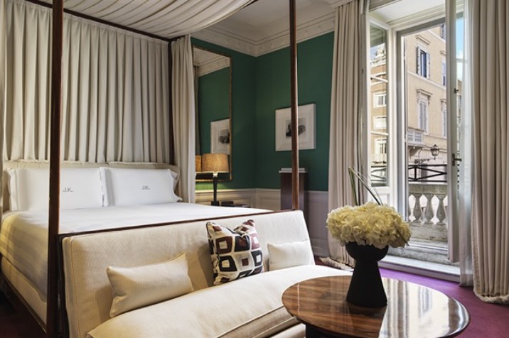 J.K.Place Roma – елегантний бутік-готель, розташований у самому серці Риму, пропонує послуги класу «люкс», приватну атмосферу та шикарний дизайн від Мікеле Бонана. На гостей чекають елегантні номери, оснащені ексклюзивними зручностями, стильне кафе з вишуканою кухнею та бар, що пропонує фірмові коктейлі. J.K.Place Roma, що входить до міжнародної асоціації Leading Hotels of the World, неодноразово отримував престижні нагороди, і продовжує підтримувати найвищий рівень сервісу.