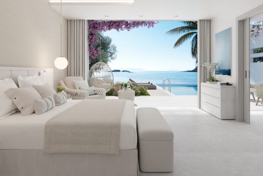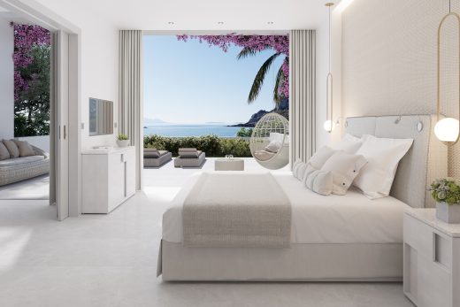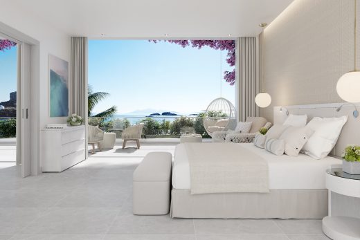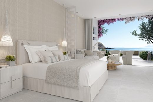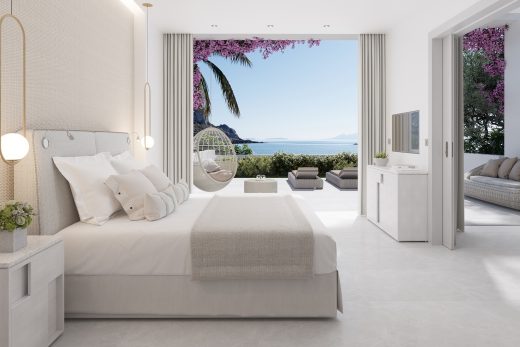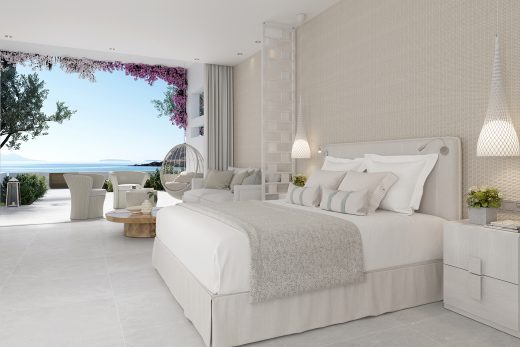 Розкішні номери мають площу 77 кв.м. Складаються люкси з окремої світлої спальні, затишної вітальні, просторої сучасної ванної кімнати та власної широкої тераси, на якій розташувався басейн з ефектом нескінченності (площа 35 кв.м.). Також на патіо розташовані комфортні лежаки та обідня зона. Проживаючи в номерах цієї категорії гості можуть милуватися чудовими краєвидами незрівнянного Егейського моря. Максимальне проживання – 5 осіб.