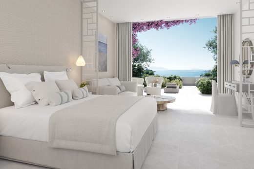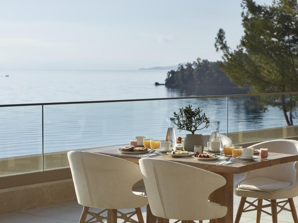 Просторі сюїти категорії Deluxe площею 50 кв.м, в них розташувалася світла спальня відкритого планування, вітальня та обідня зона, а з приватного мебльованого балкону і прекрасного саду відкривається краєвид на приголомшливий басейн і хвилі Егейського моря. Максимальне проживання – 4 особи.