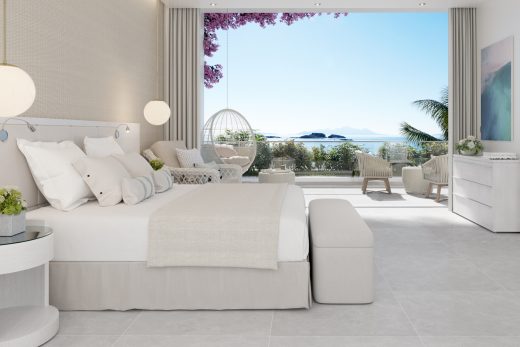 Шикарні номери площею 90 кв.м призначені для сімейного проживання. Вони мають дві окремі просторі спальні, світлу зону для відпочинку з додатковим спальним місцем, обідню зону, широку терасу, приватний сад і прямий вихід до білосніжного піщаного пляжу. Інтер'єр номера виконаний у розкішному середземноморському стилі. Максимальне розміщення – 6 осіб.