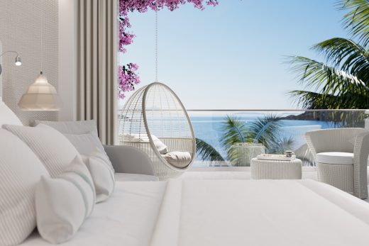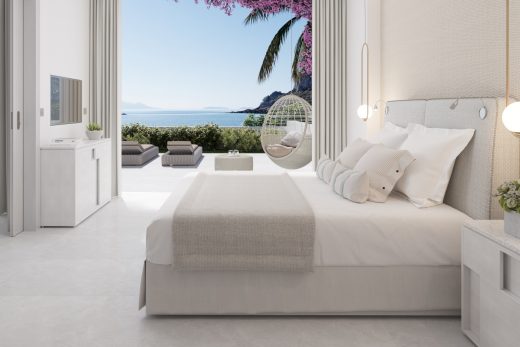 Просторі номери площею 31 кв.м розташовуються у головній будівлі готелю. Вишуканий інтер'єр витриманий у сучасному стилі та створює невимушену атмосферу розслабленого відпочинку. З панорамних вікон та власного балкону гостям відкривається захоплюючий вид на хвилі Егейського моря, що іскряться, і чудовий курорт з мальовничими пейзажами. Максимальне проживання – 2 особи.
