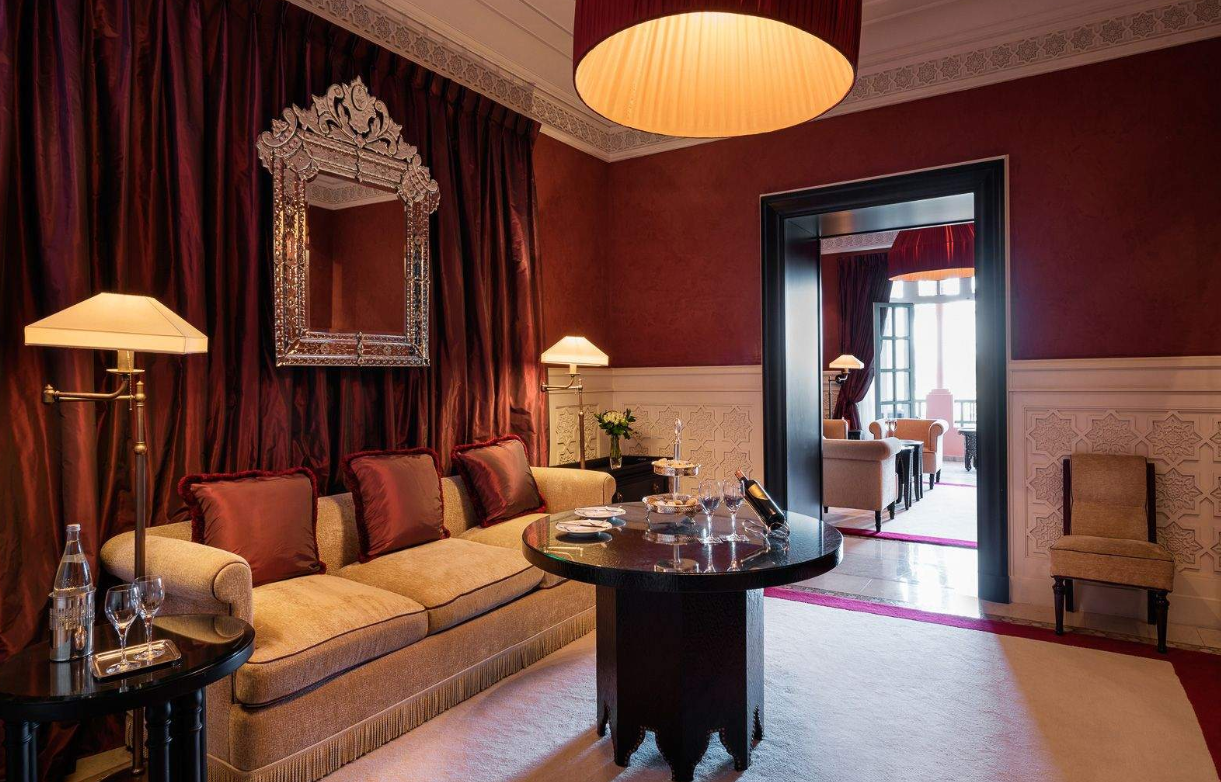 Ла Мамоунія Марракеш і апос; внутрішня секція захоплює своєю красою: мармурові колони, розсіяні дерева і камені, вишукані тканини і істинні твори мистецтва. Гості La Mamounia Marrakesh чекають блискучі номери, суші та фесси Морокканські вілли, riadas, грандіозний SPA-комплекс 2,500 м2, тенісні корти, лазурі басейни, чотири ресторани, призначені для миття гумок, п'ять чудових барів, конференц-залів та банкетів, а також багато інших послуг.