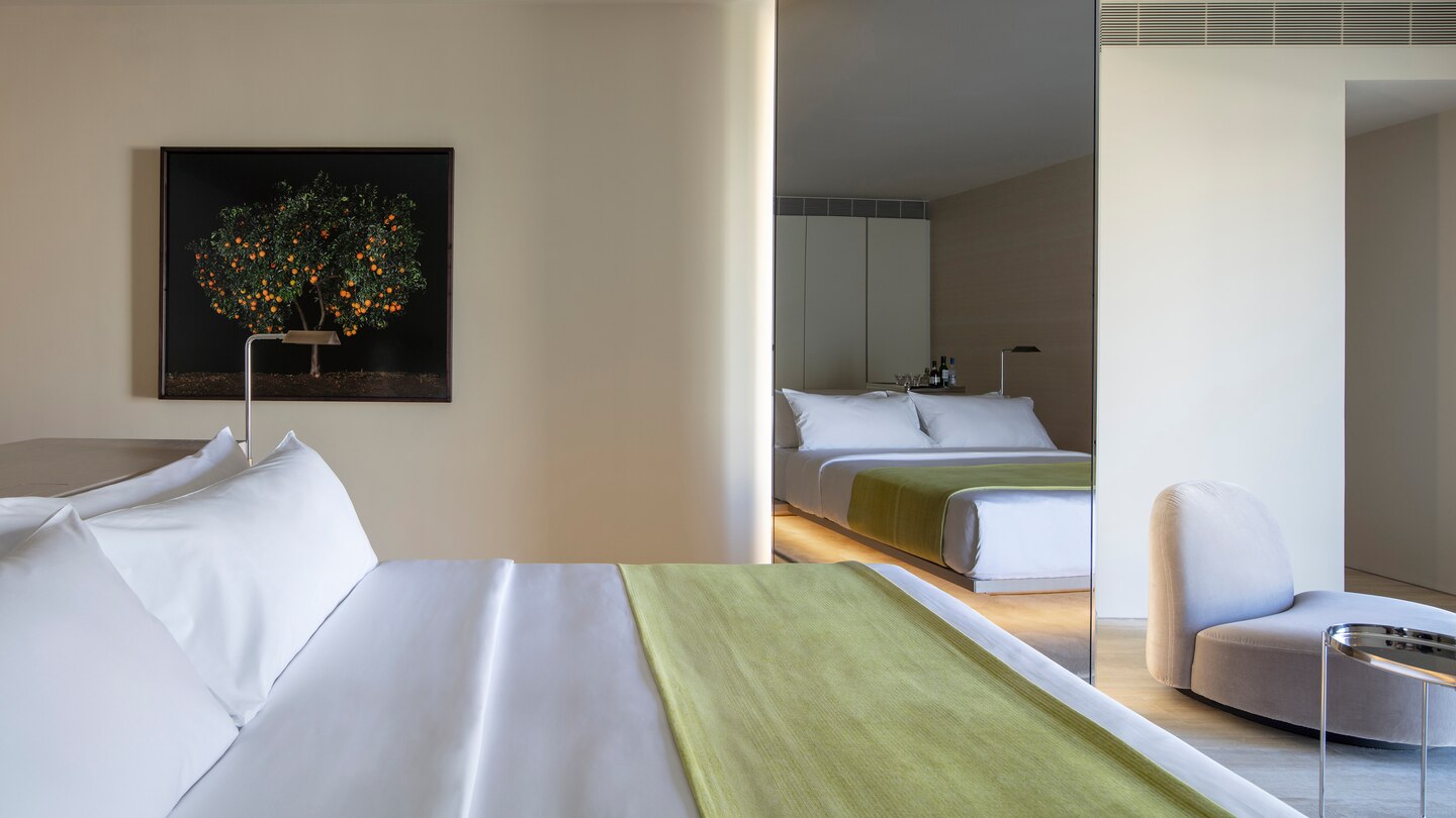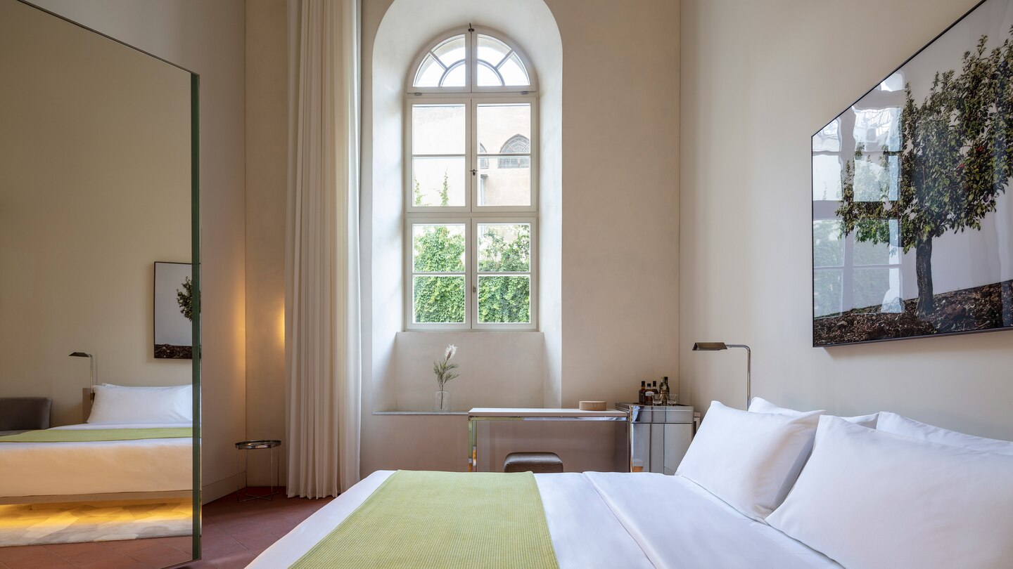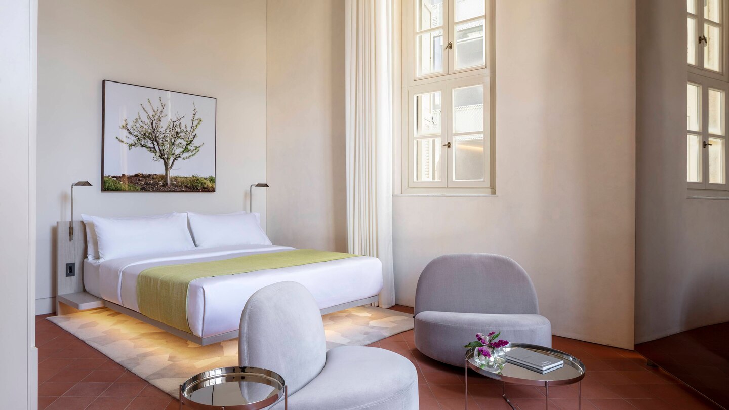26 - 37 кв.м. Кількість в історичному крилі має високу стелю і розм\'якшується ліжком розміру короля, диваном, робочим столом, має величезне дзеркало на підлозі. Ванна кімната з трав\'яного мармуру оснащена імбирним душем. Номер прикрашений мистецтвом сучасного мистецтва, вікна відкривають погляд на інтер\'єрний суд. Місце: 2 дорослих і 1 дитина.