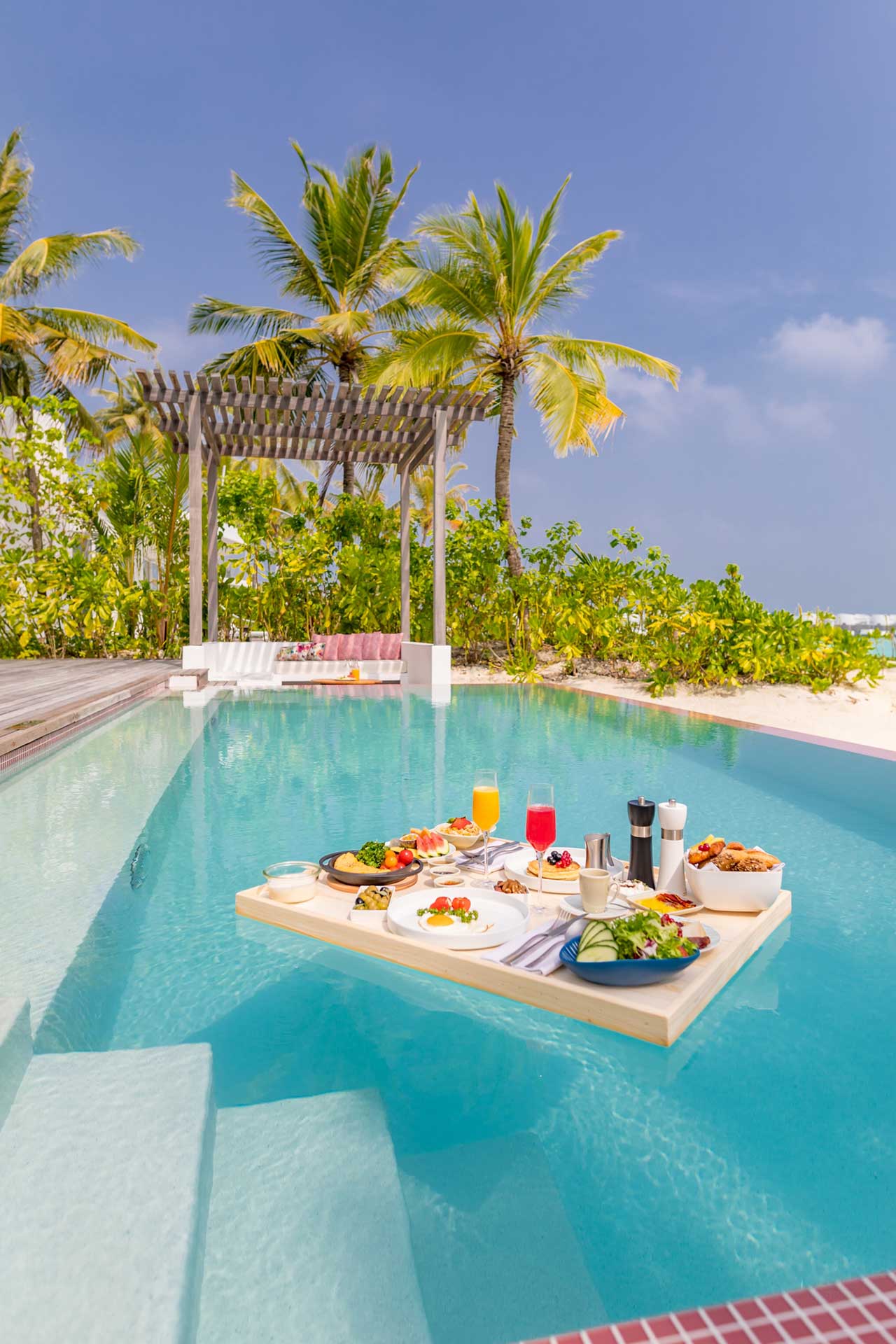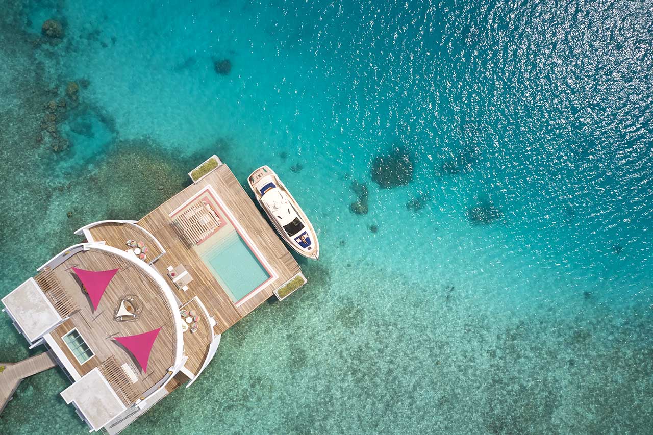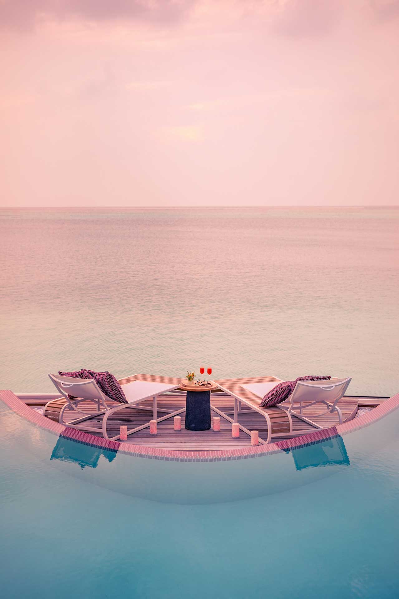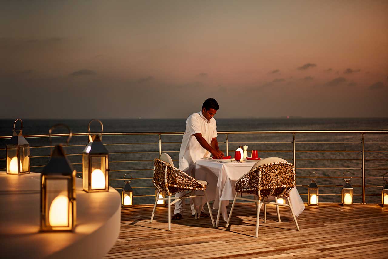 Також можна замовити приватну вечерю, яка сервірується на пірсі, і плавучий сніданок на власній віллі.