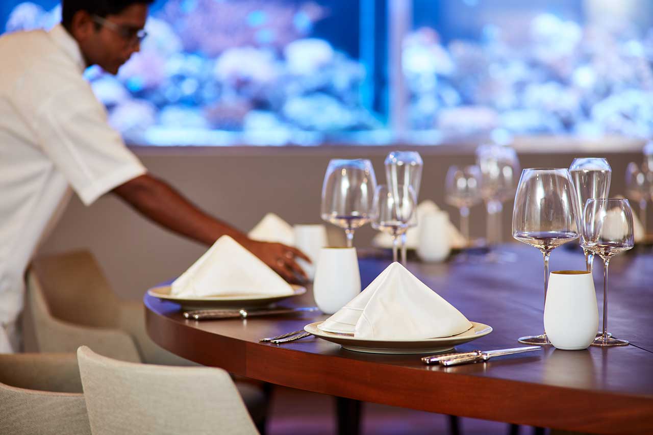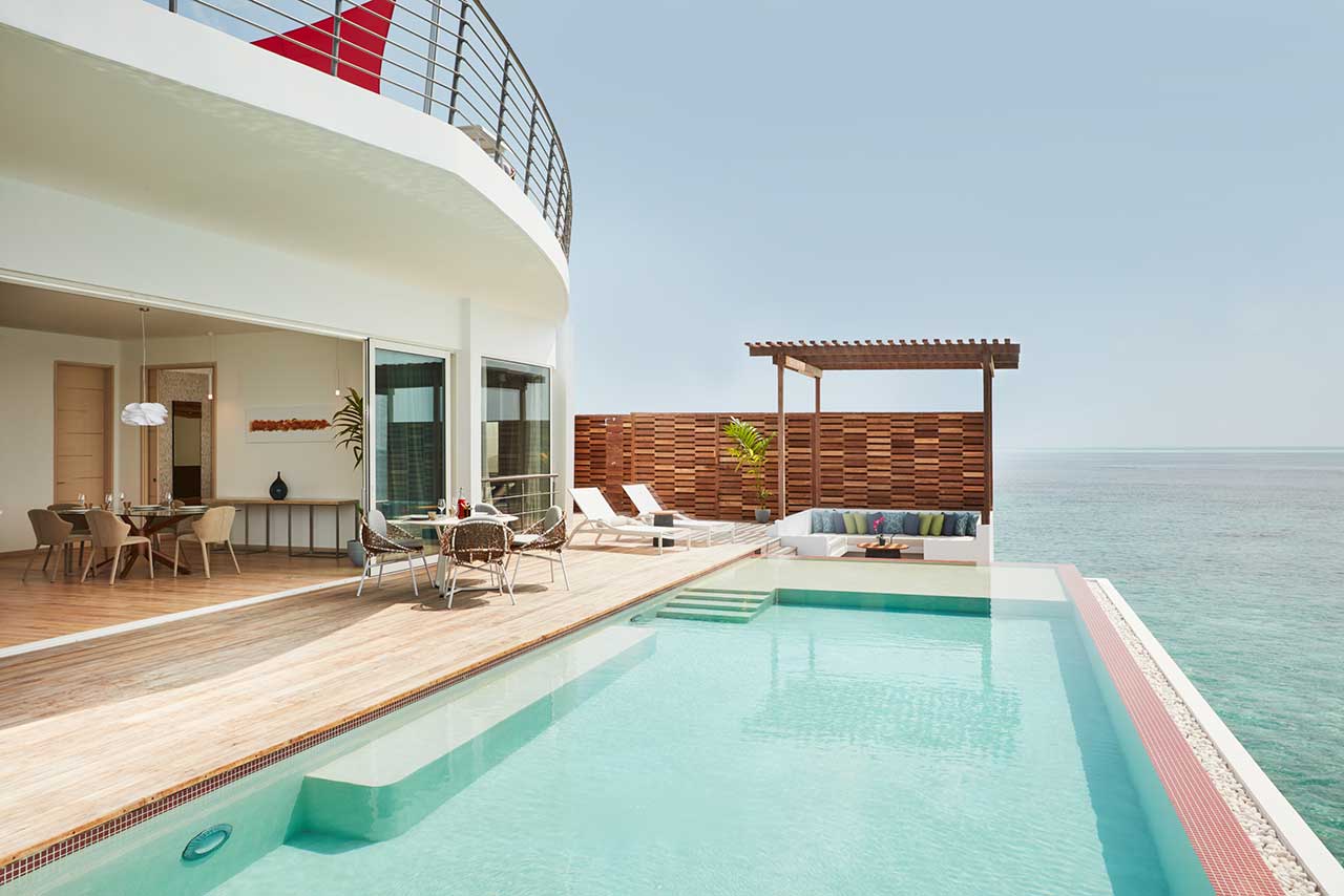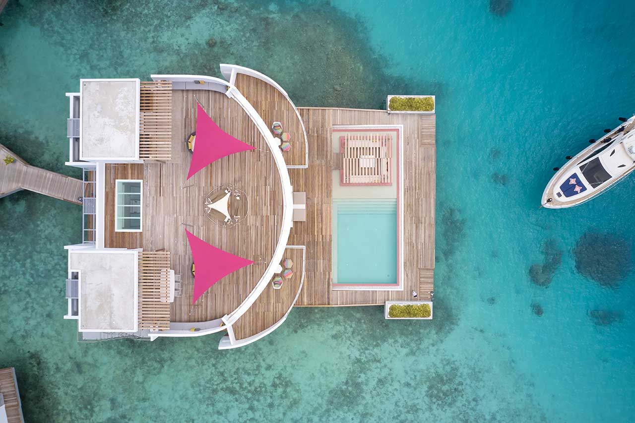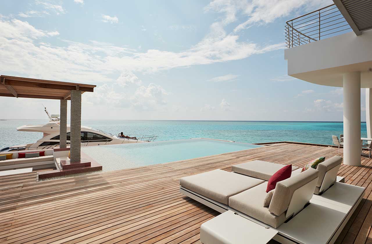 Також можна замовити приватну вечерю, яка сервірується на пірсі, і плавучий сніданок на власній віллі.