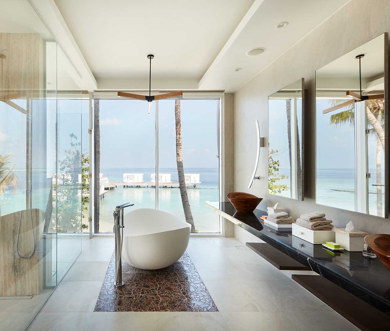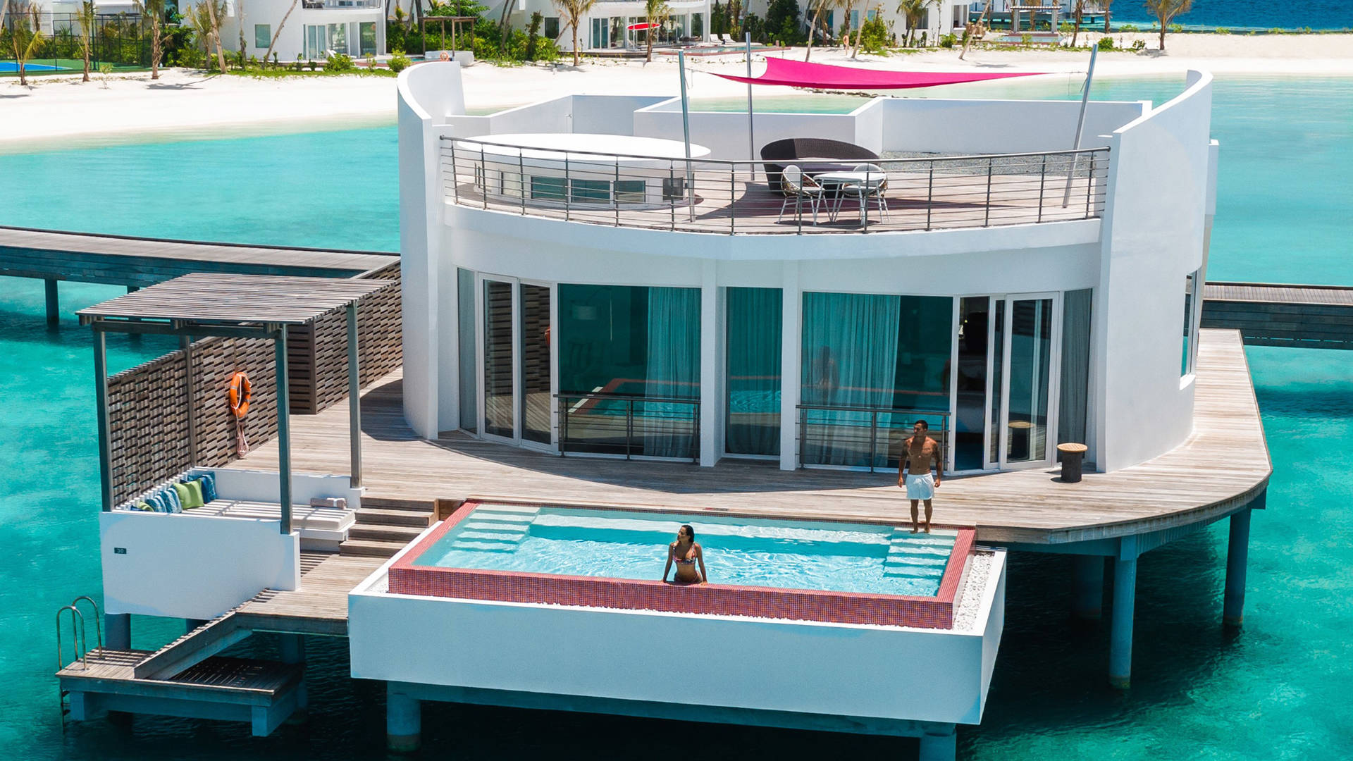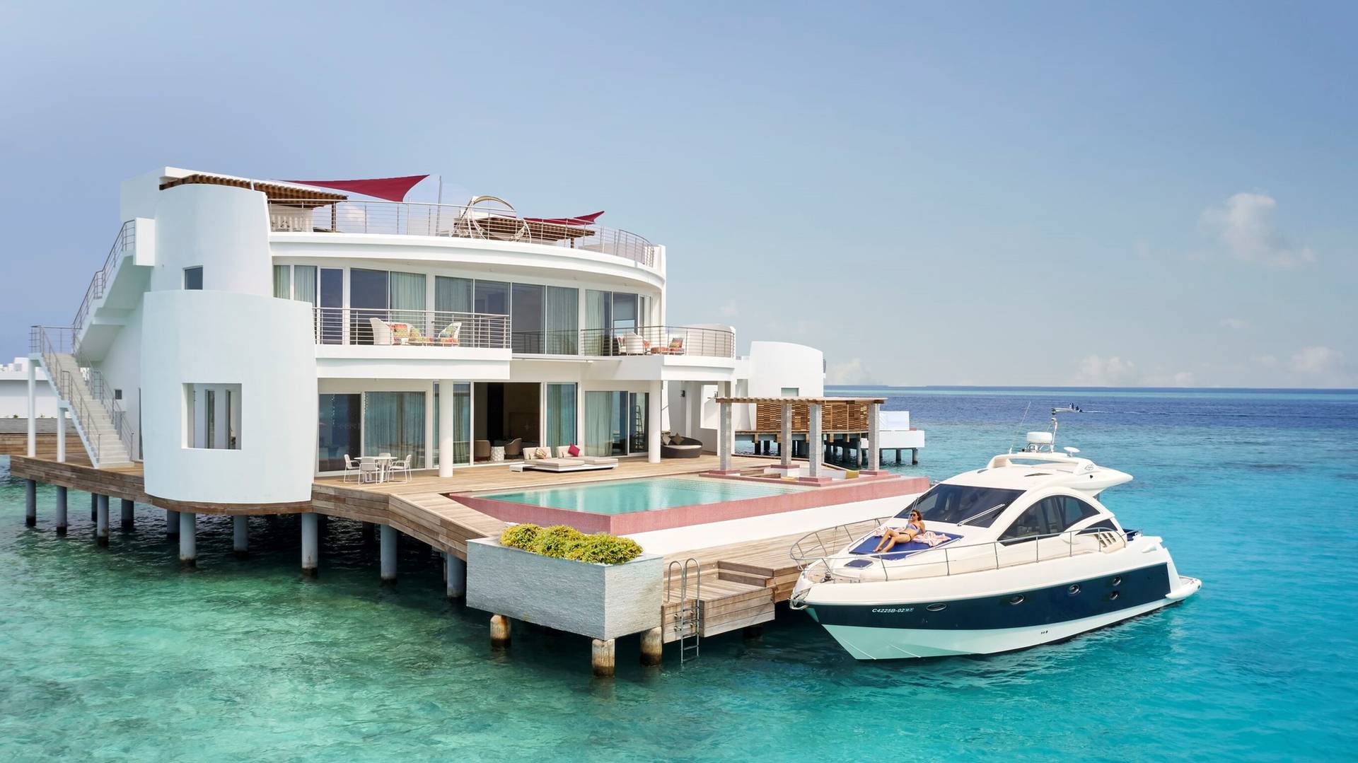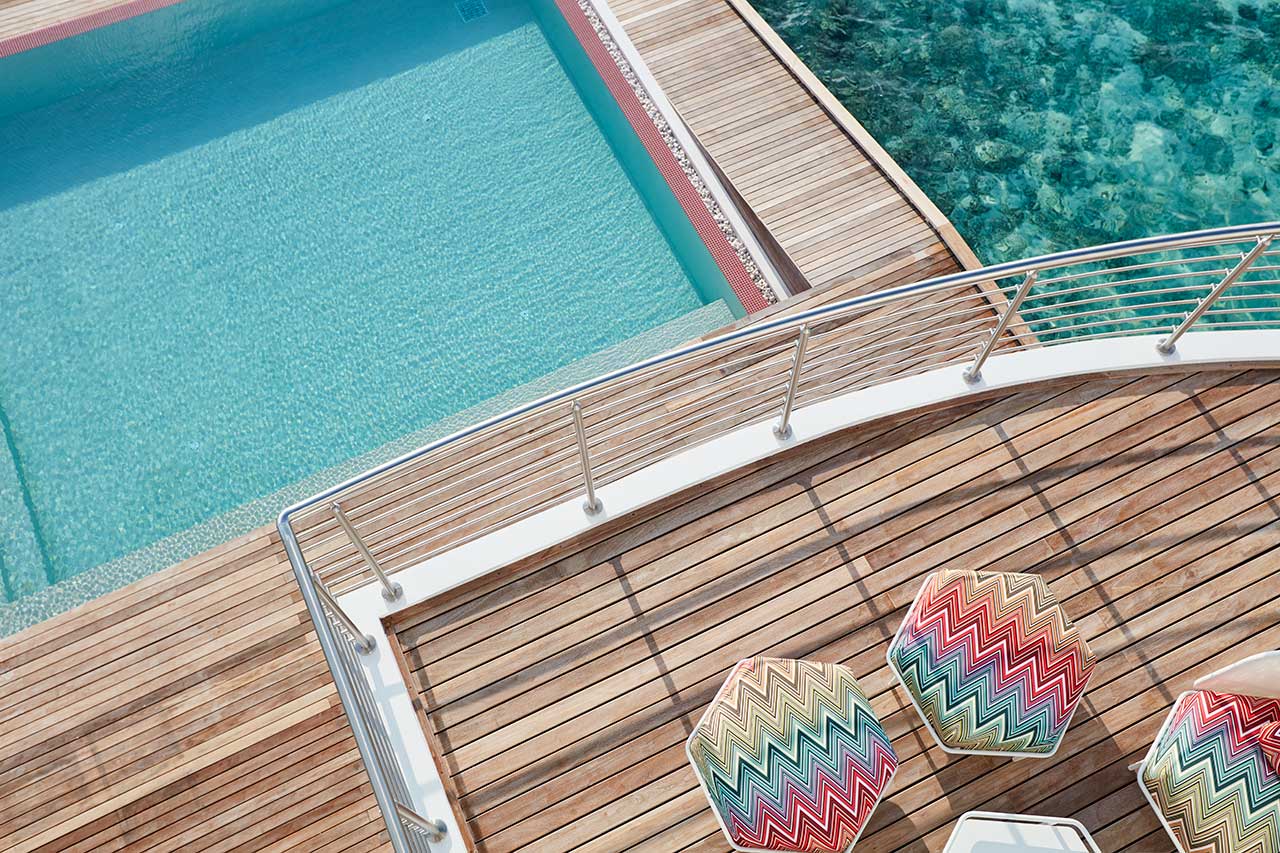 Також можна замовити приватну вечерю, яка сервірується на пірсі, і плавучий сніданок на власній віллі.