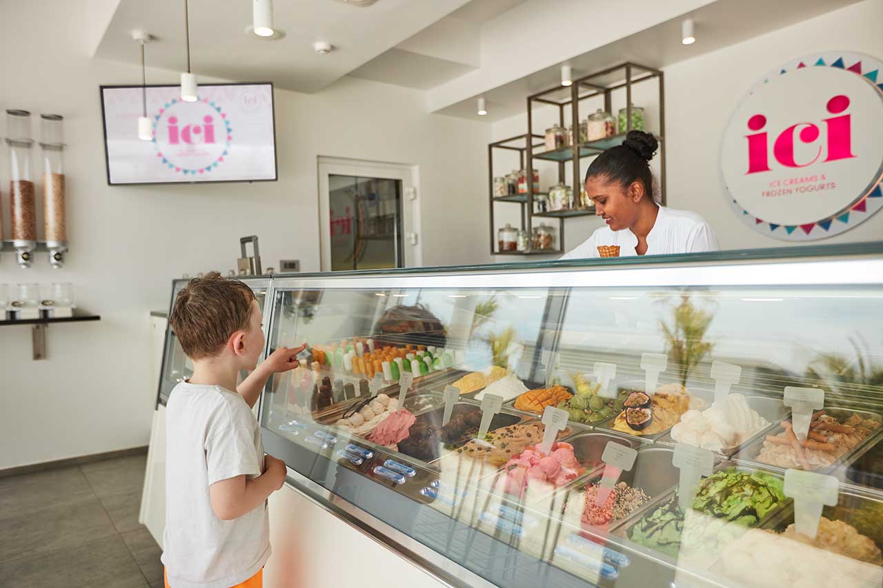 Gelateria – власний бренд дивовижного морозива, доступного всім відпочиваючим. Гості можуть насолодитися особливими сортами морозива в павільйонах та з мобільних візків, які зустрічаються на пляжі.