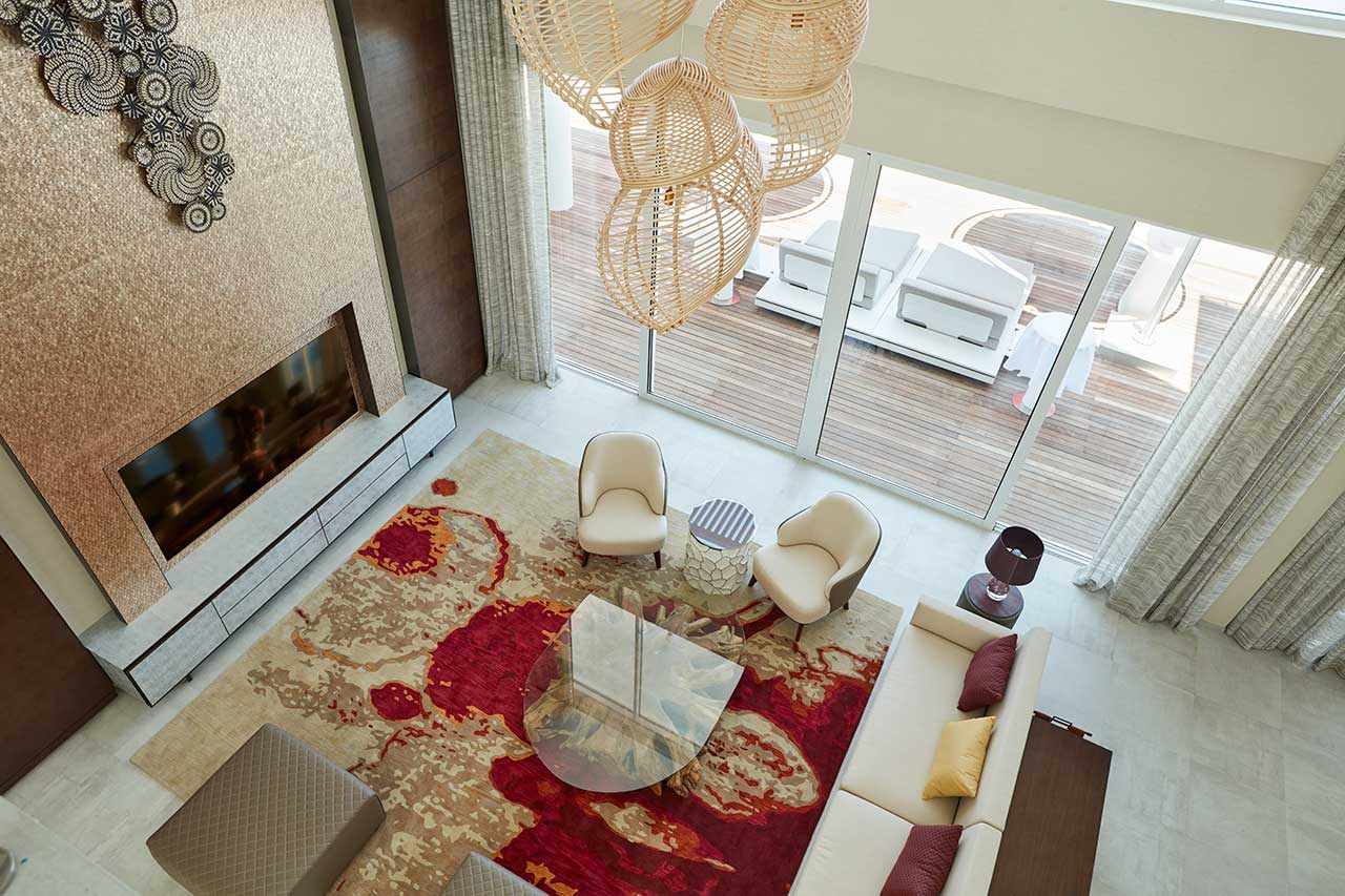 Для гостей Jumeirah Maldives передбачено 67 двоповерхових вілл та резиденцій різних категорій. Кожен номер оснащений приватним басейном та терасою на даху з видом на океан. Також є Wi-Fi, телевізор, кондиціонер.