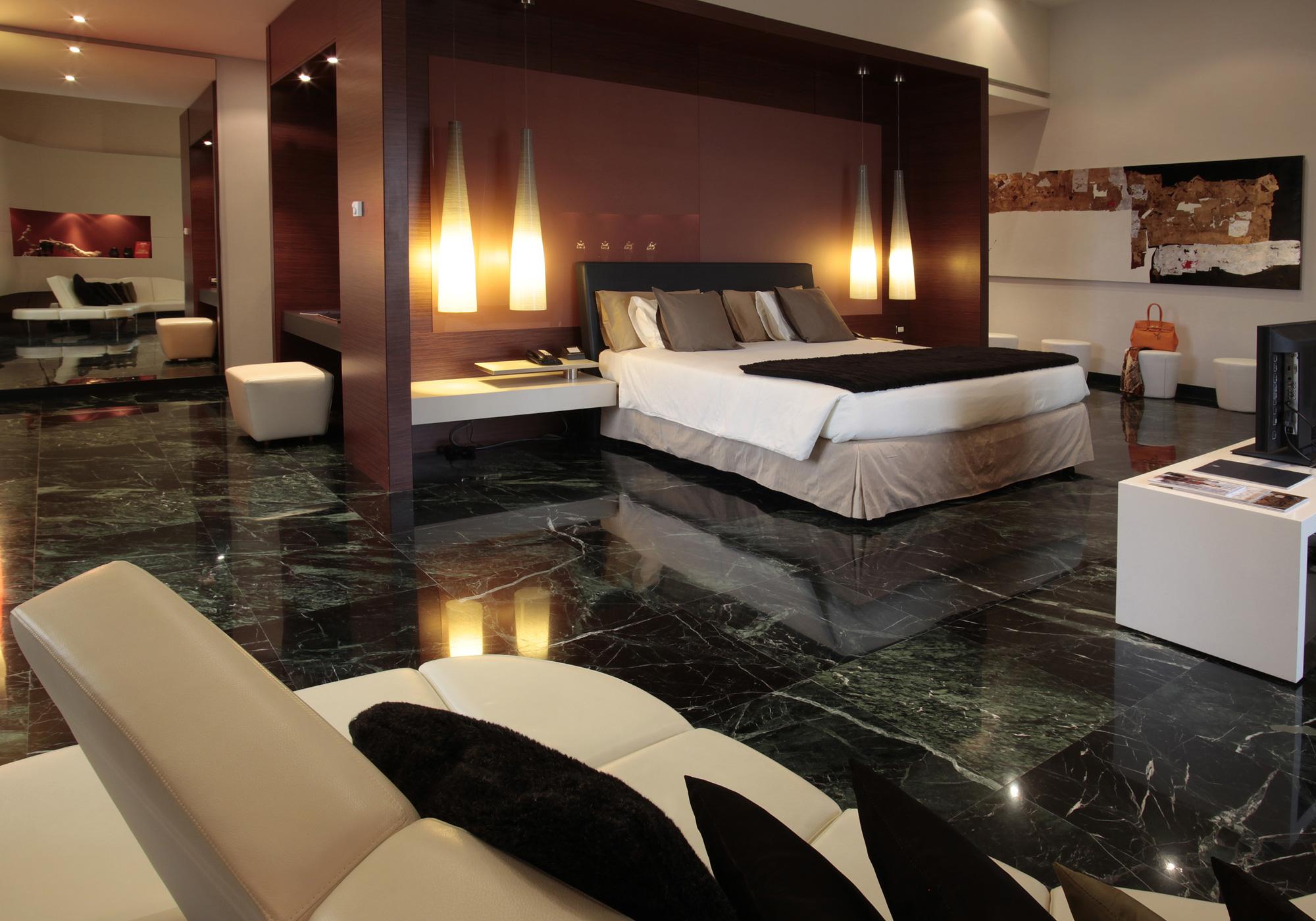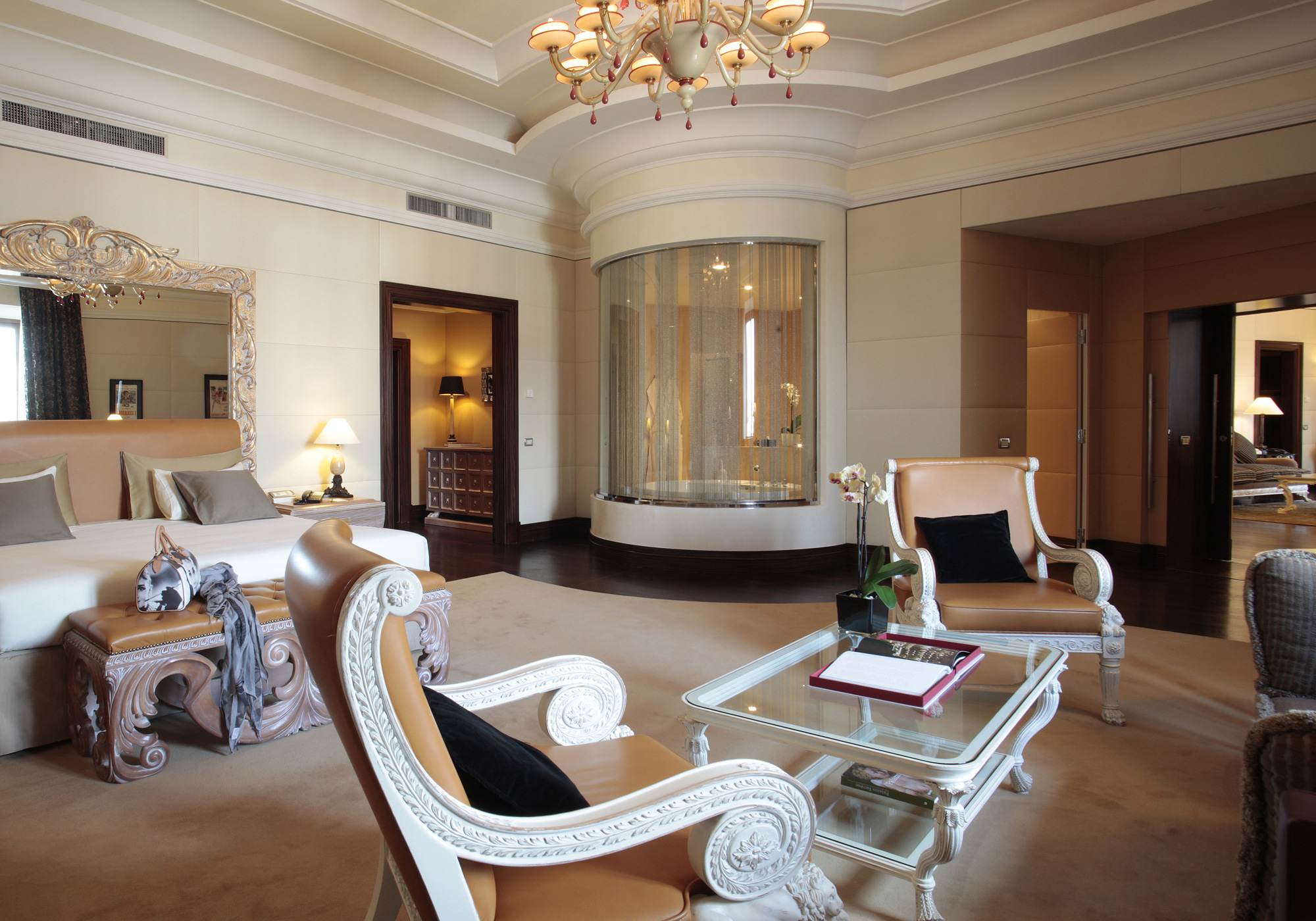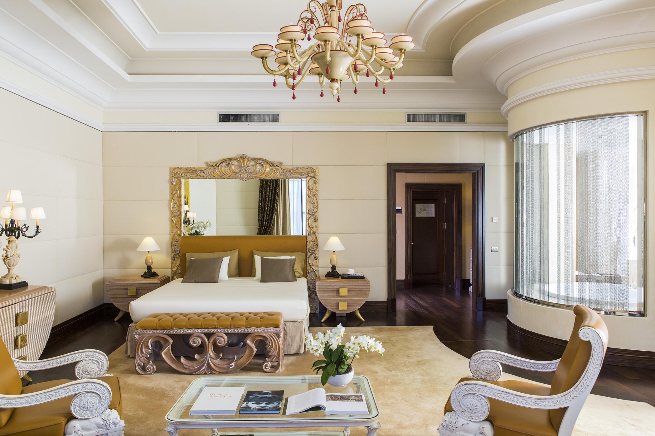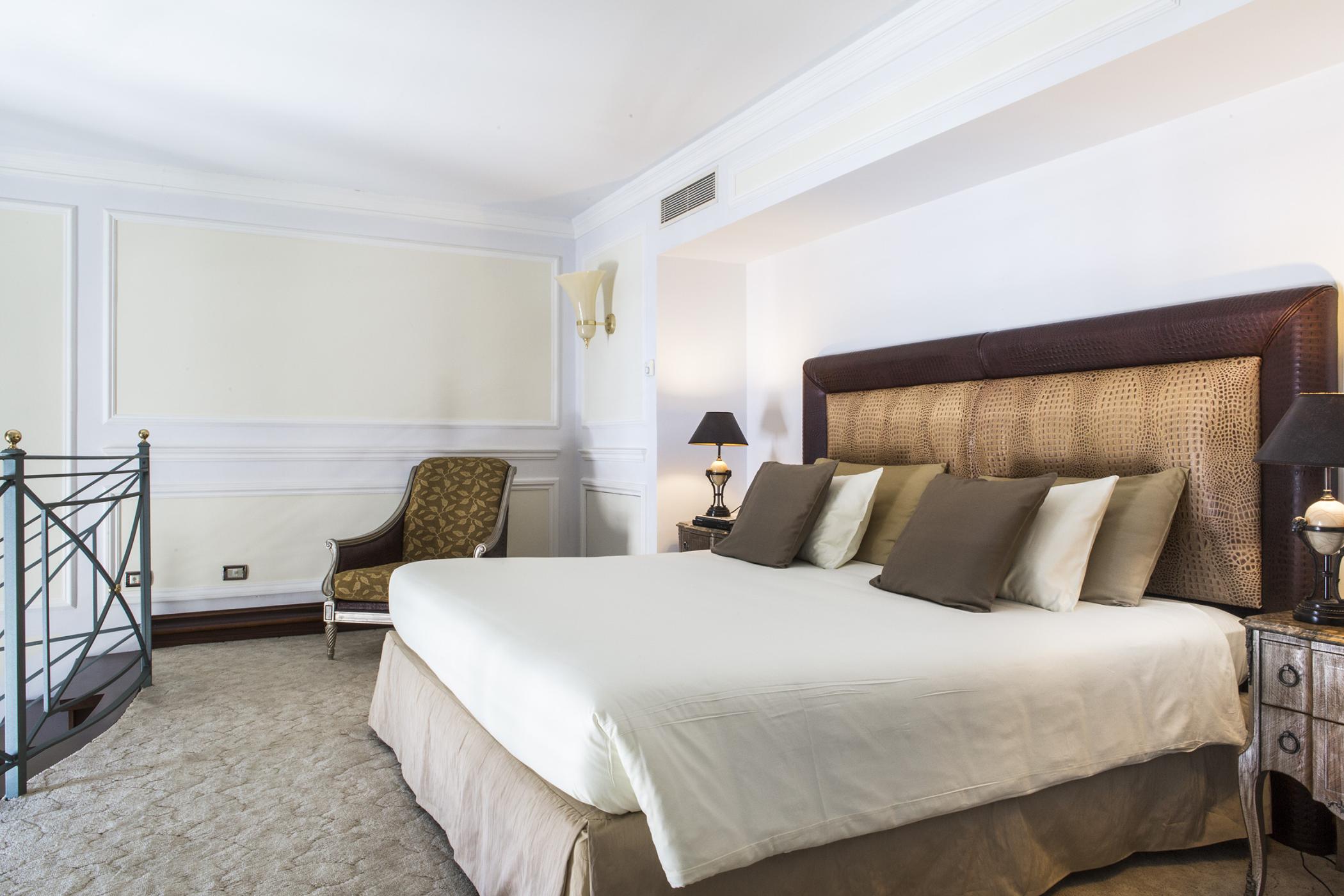 Розкішний номер виконаний у сучасному стилі, з мармуровими підлогами, приватною терасою, турецькою лазнею та їдальнею. У спальні встановлено ліжко "king-size".