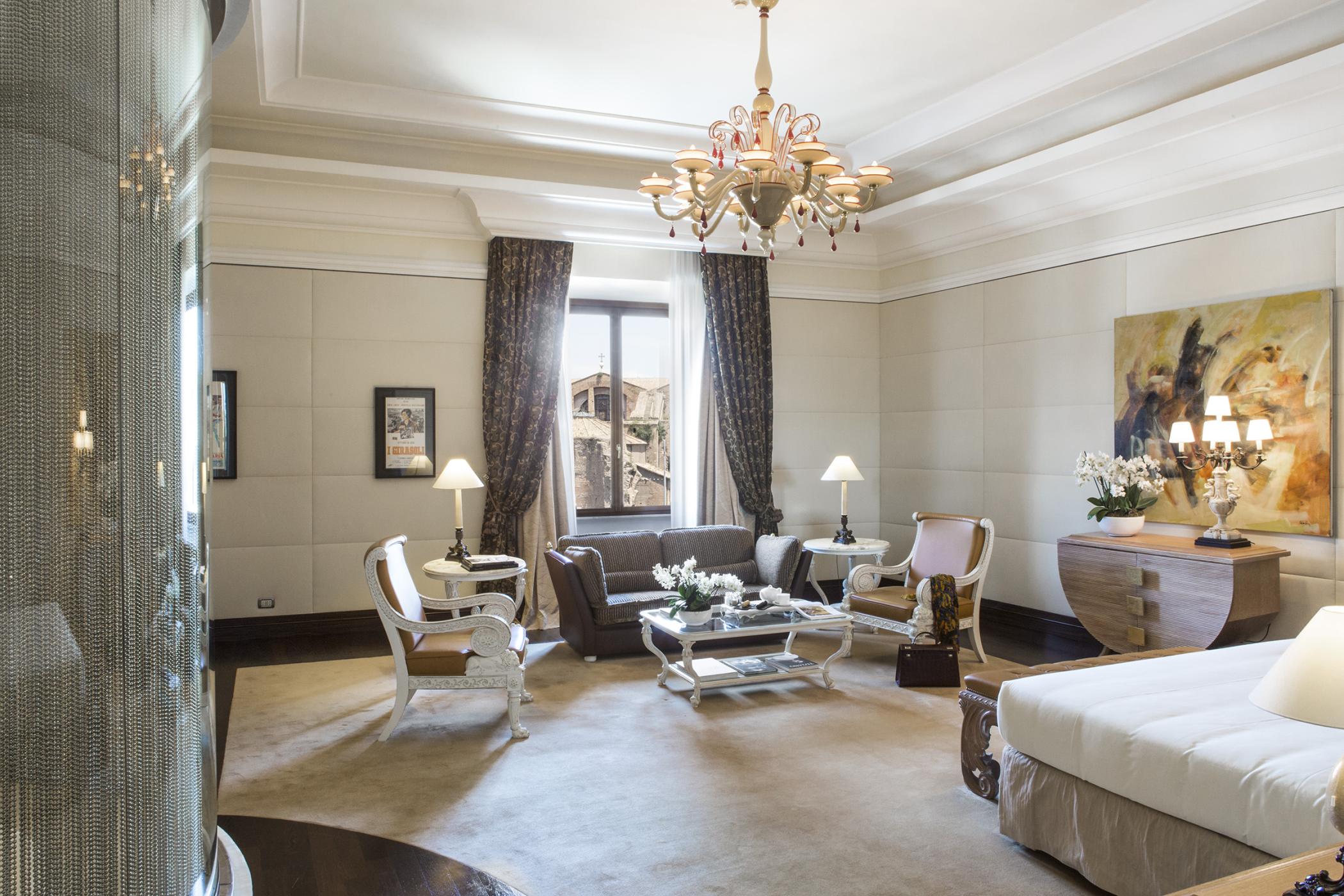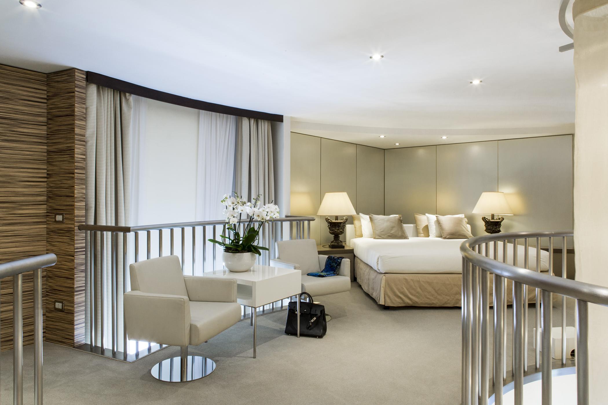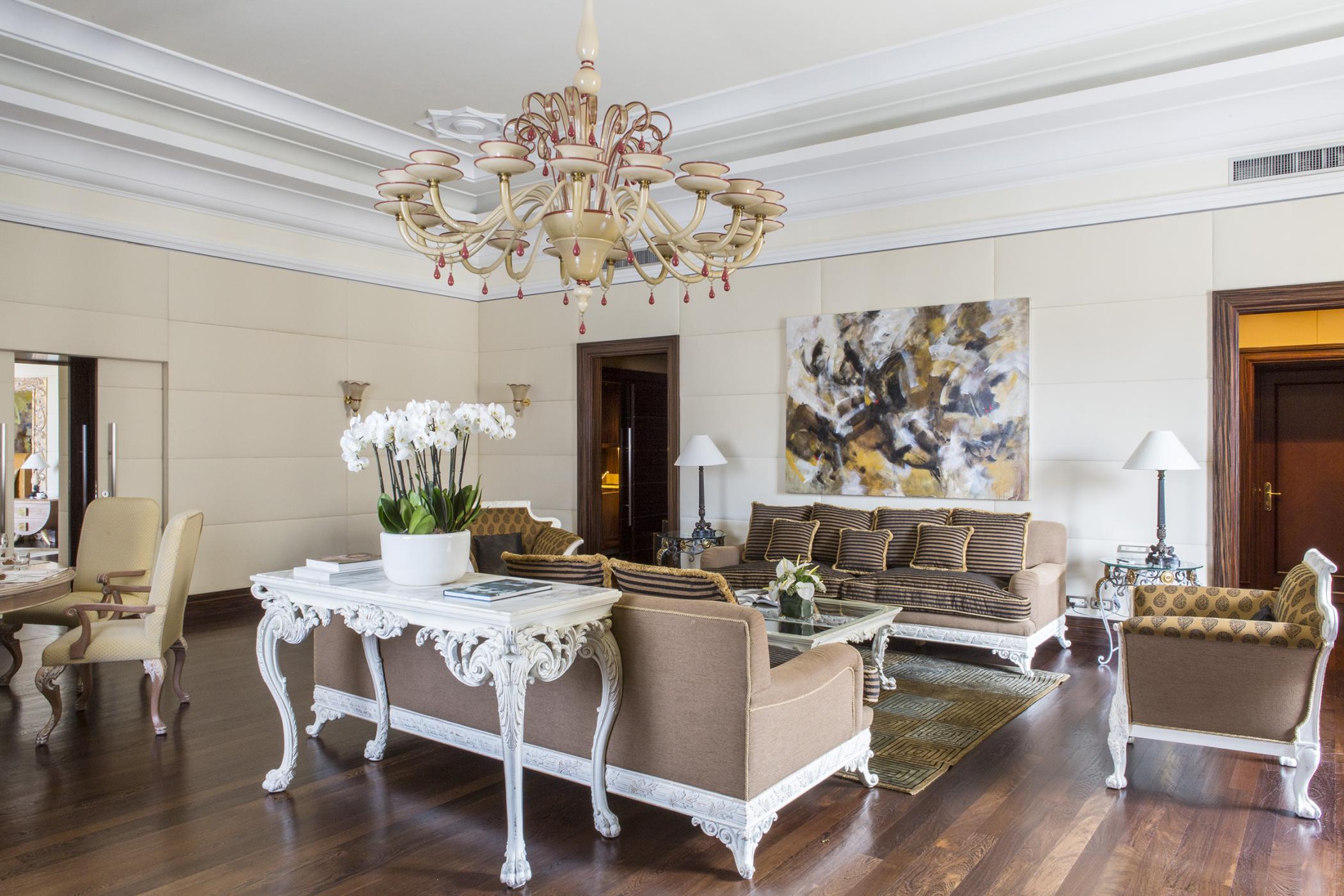 Розкішний номер виконаний у сучасному стилі, з мармуровими підлогами, приватною терасою, турецькою лазнею та їдальнею. У спальні встановлено ліжко "king-size".