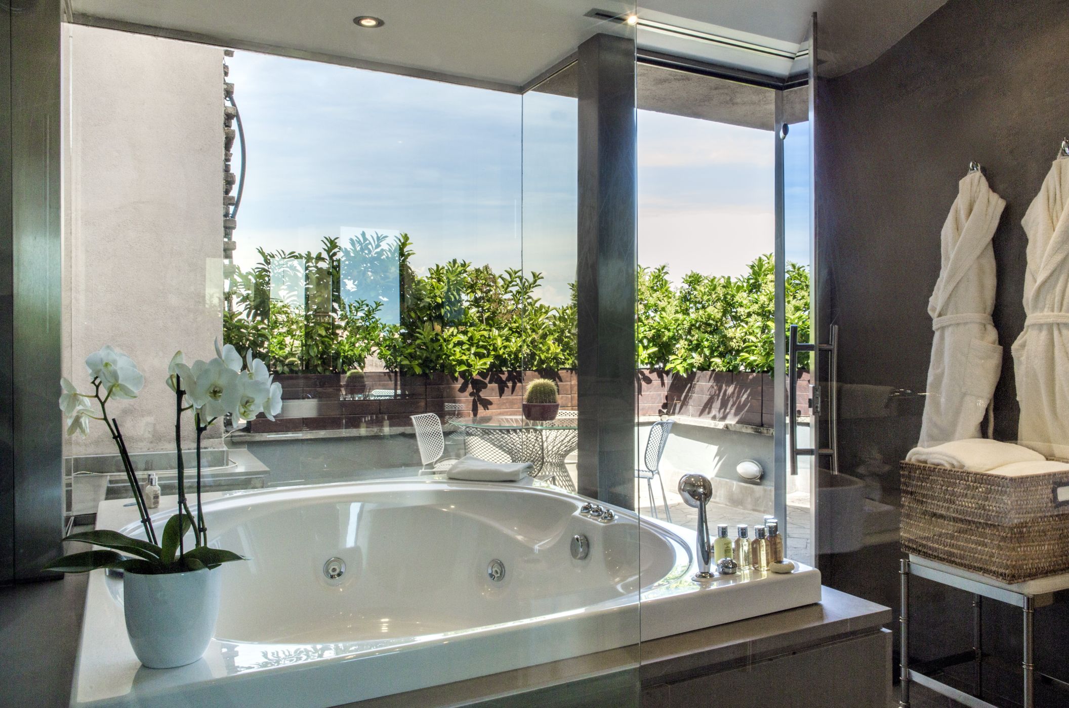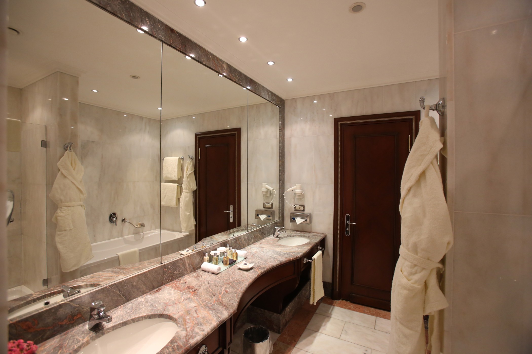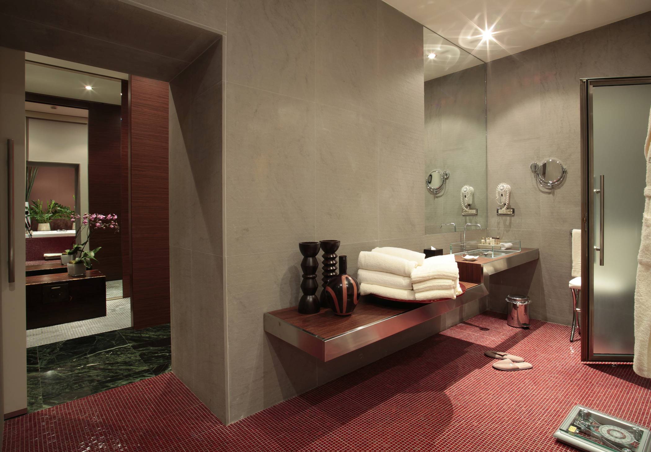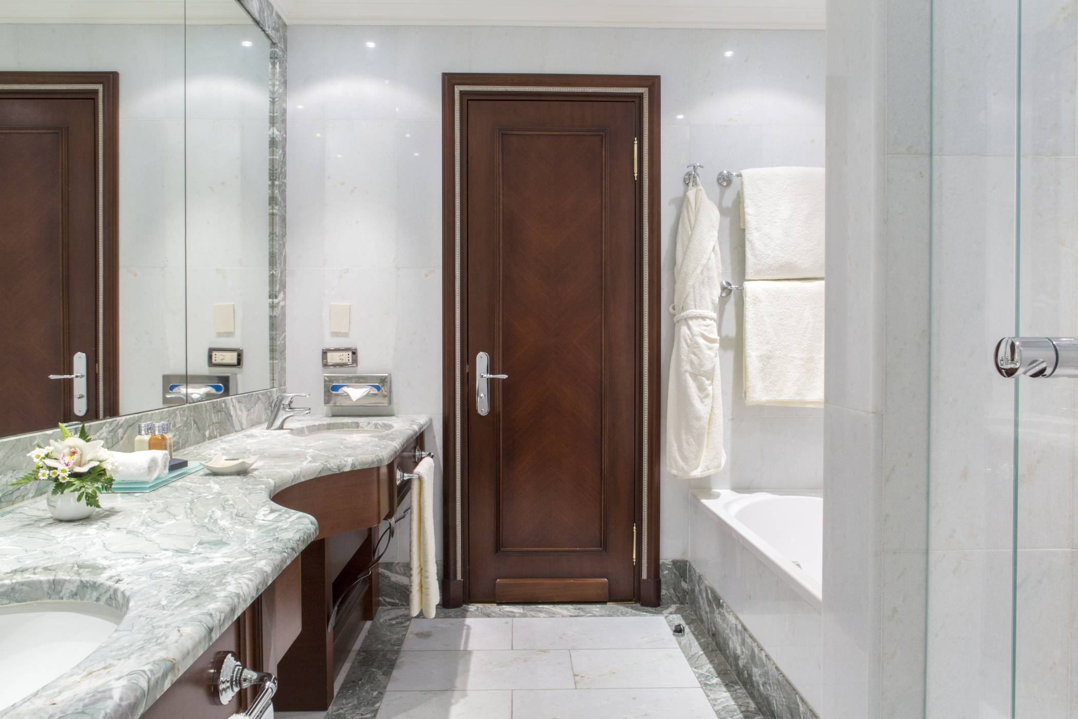 Розкішний номер виконаний у сучасному стилі, з мармуровими підлогами, приватною терасою, турецькою лазнею та їдальнею. У спальні встановлено ліжко "king-size".