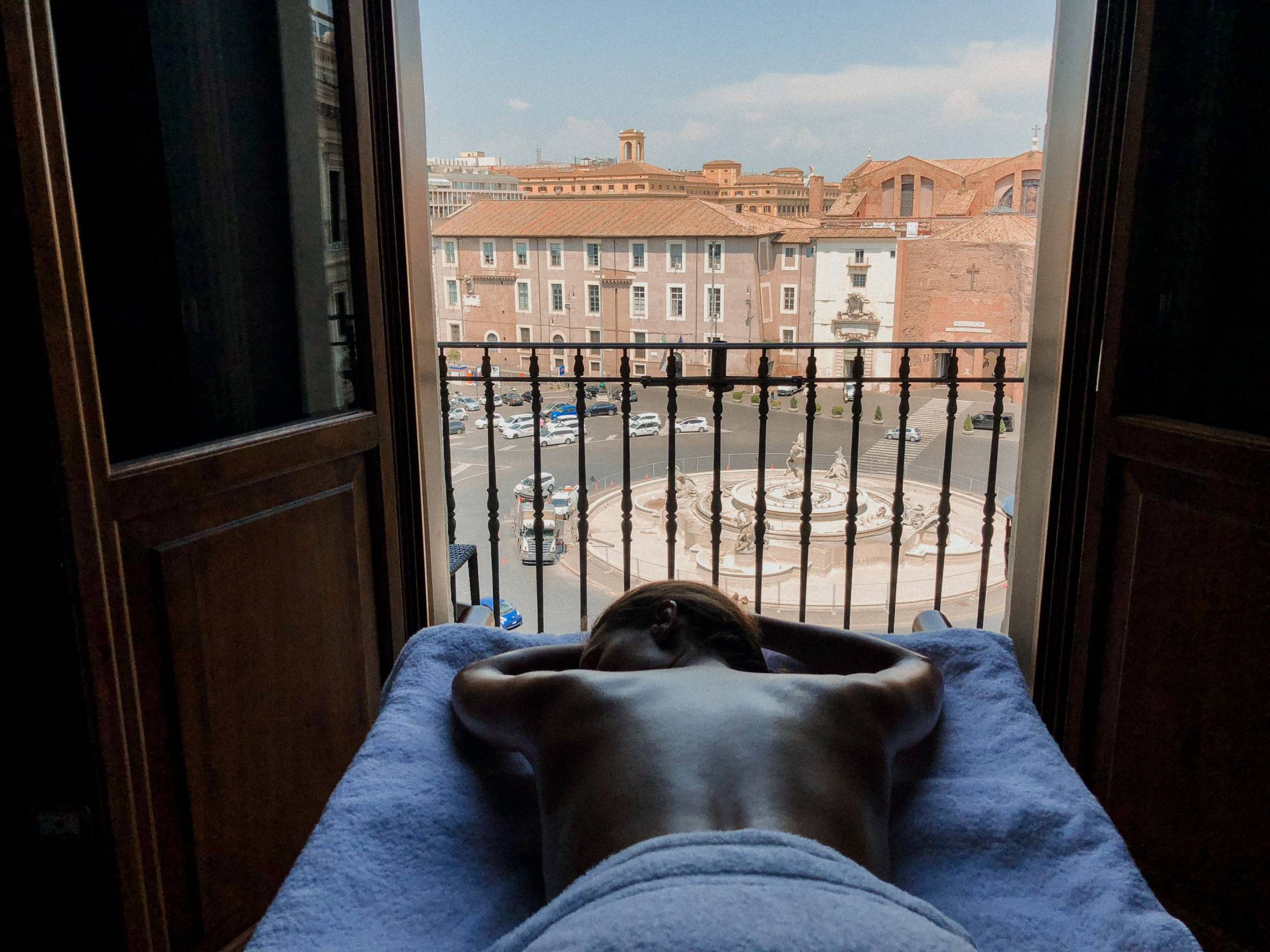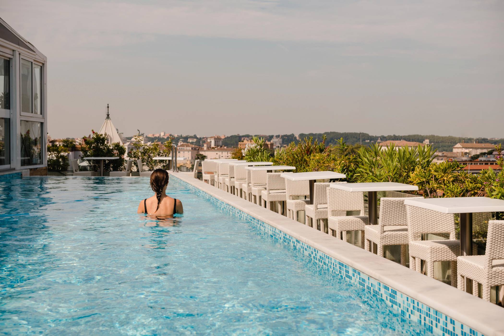 Готель Anantara Palazzo Naiadi Rome Hotel був збудований в 1887 році архітектором Гаетано Кохом. Будівля виконана у непорушному неокласичному стилі, про що свідчать романські арки в нижній частині фасаду, пілястри, скульптури та балясини. При вході гостей зустрічає просторий вестибюль з високими стелями, стильним декором і мармуровим оздобленням. А спустившись униз, у підвальне приміщення, час ніби втрачає свою силу і переносить відвідувачів в епоху стародавнього Риму, відкриваючи погляду унікальні мозаїки та фундамент знаменитих Термів Діоклетіана. На даху готелю розташований басейн і тераса, з якої відкривається чудовий краєвид на місто.