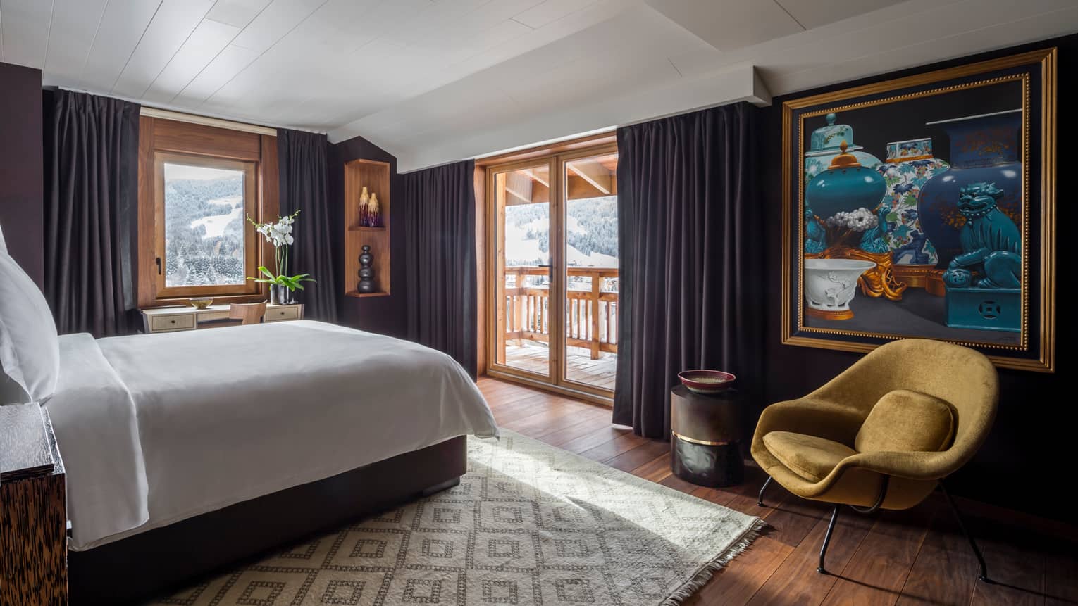 Площа 81 кв.м. Номер з балконом і видом на долину знаходиться тільки в Chalet Noémie. У номері є дві ванні кімнати з душем і ваннами, простора вітальня з каміном, гардеробна в одній зі спалень, телевізор, телефон, широке королівське ліжко, повне ліжко, двоспальний розкладний диван, односпальне та дитяче ліжка.