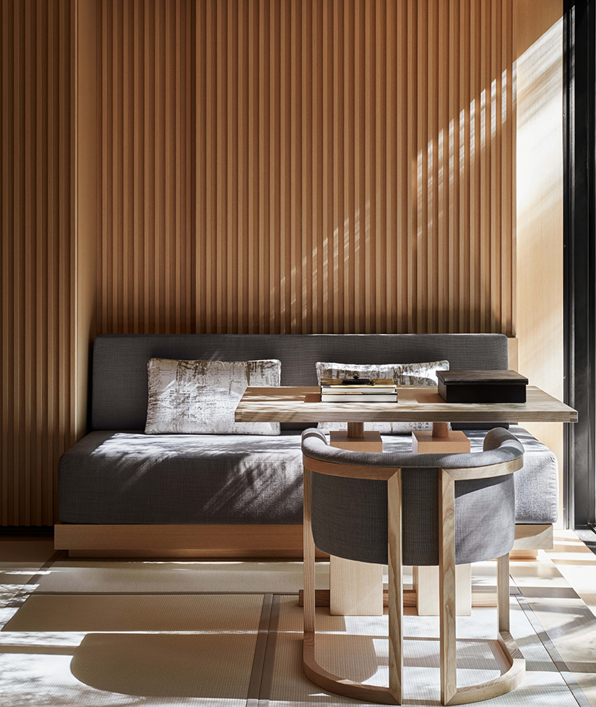 Життя готелю поєднує в собі традиційний стиль річок для японських готелів і спокійних особняків мережі Aman. Всі номери прості і наповнені природним світлом. Все подихає спокійно і спокійно, допомагає розслабитися і заспокоїти прекрасний краєвид, який виходить з панорамного кінця готелю.