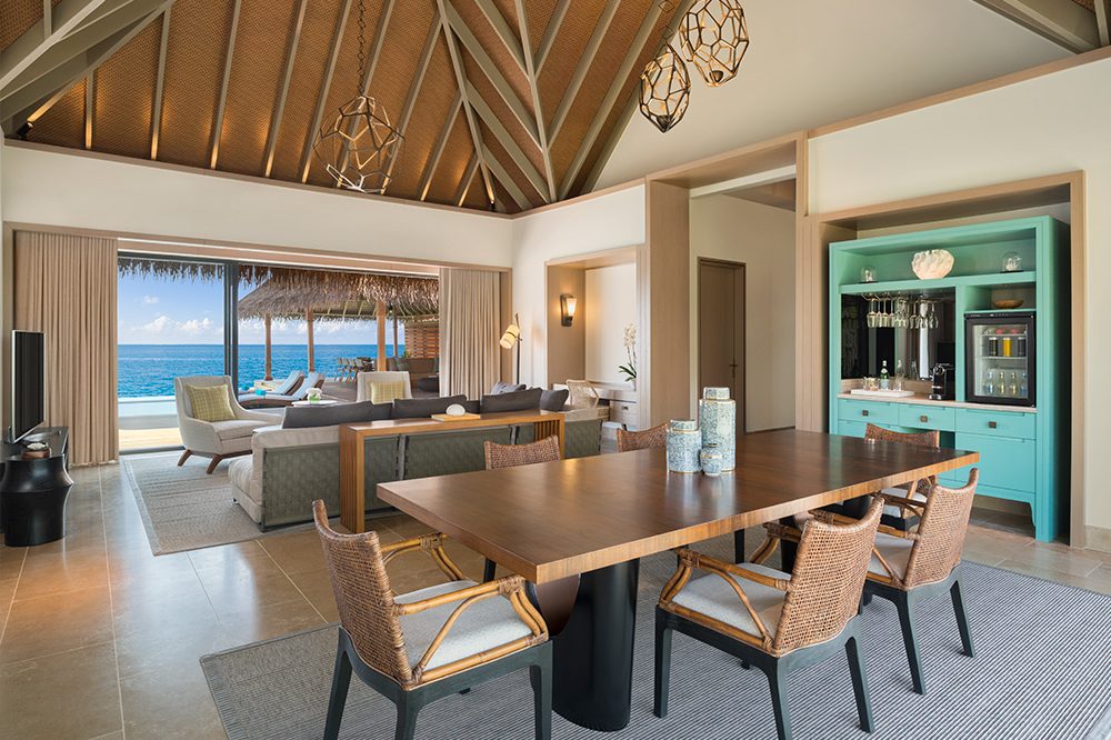 Waldorf Astoria Maldives Ithaafushi запрошує отримати незабутні гастрономічні враження в одному з 11 ресторанів курорту або повечеряти на терасі власної вілли.