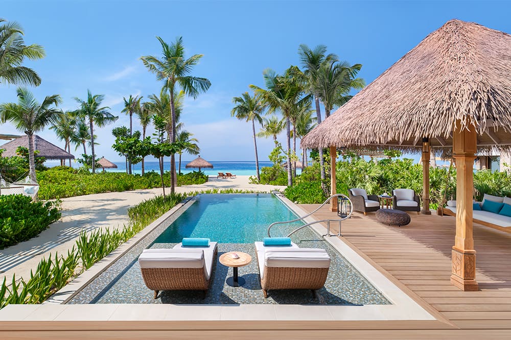 Waldorf Astoria Maldives Ithaafushi розташований на трьох островах атола Південний Мале, за 27,5 км від міжнародного аеропорту Велана (м. Мале). Трансфер: 30 хвилин на яхті (цілодобово), або трансфер на гідролітаку – за індивідуальним запитом.