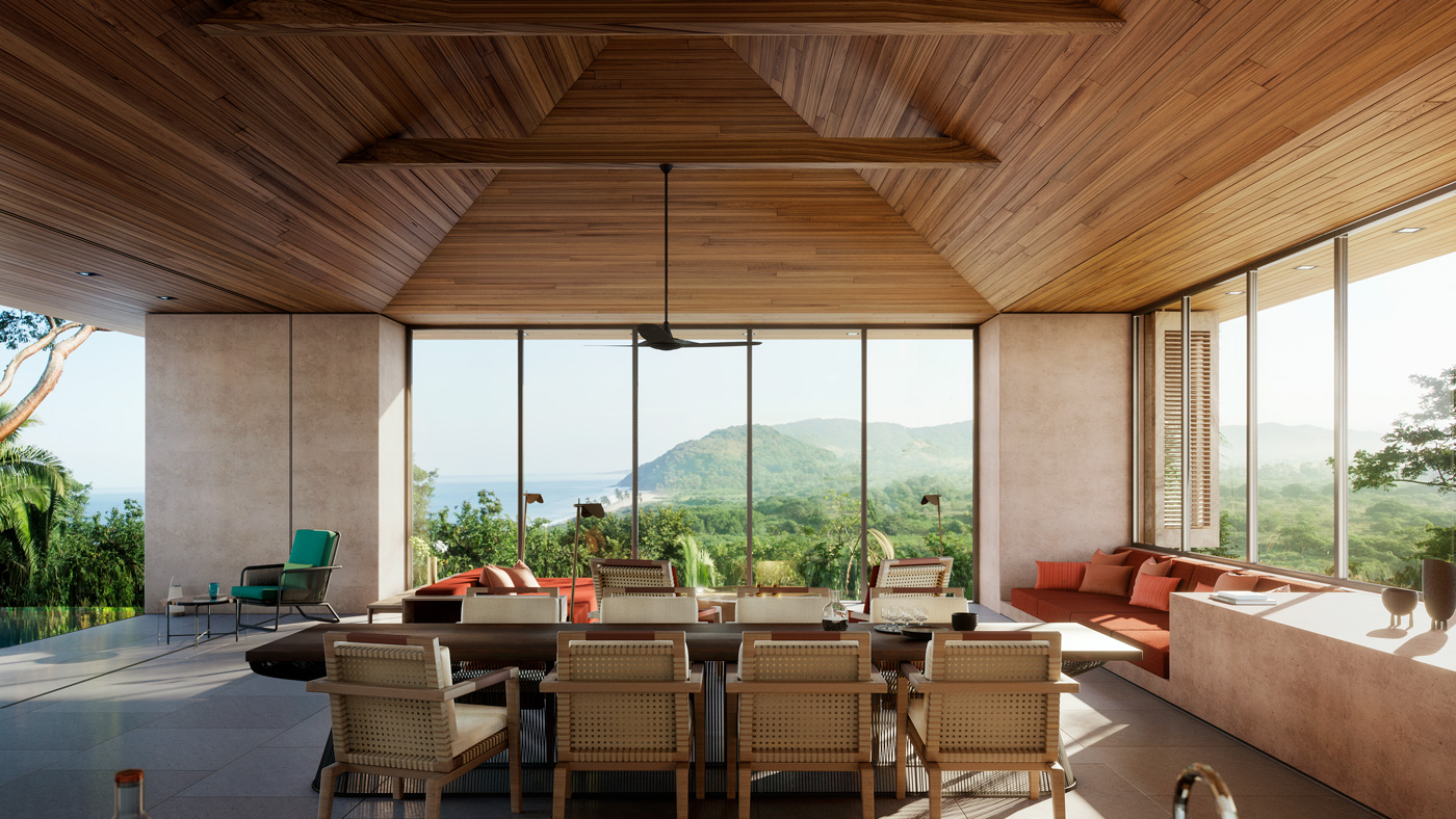 Розкішний комплекс поєднує в собі дисперговані, віддалено ізольовані вілли в сучасному стилі, створені з зелених матеріалів і гармонійно оформлені в навколишньому ландшафті. Кожен гість тут зустрічає бронзовий гонг, який м'який лунає над павільйоном і інформує курортну команду нових приїздів. Ця гонка була створена спеціально для курорту OneOnly Mandarina. На в'їзді на територію, велике древнє дерево Ігури, охоронець курорту, з подальшим захоплюючим видом на Тихий океан, зламали. Гості тапо; зустріч відбувається у відкритому просторі, вид на вітальню в чорно-холодному басейні, що відображає залізо і яскравий небо за ним.