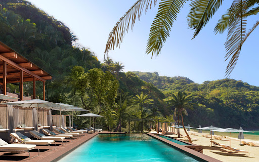 2. Ресторан Alma's - це американський ресторан для кухні. У кінці дня гості можуть похизуватися кронами дерев в ранковому сонці і чудовим захід сонцям. Є дві великі дерев'яні печі на відкритій кухні, а сторона ресторану прилягає до каскадної тераси і два басейни, які простягаються прямо над скелі, одна в тіні рослинності, а інший в сторону безшовних.
