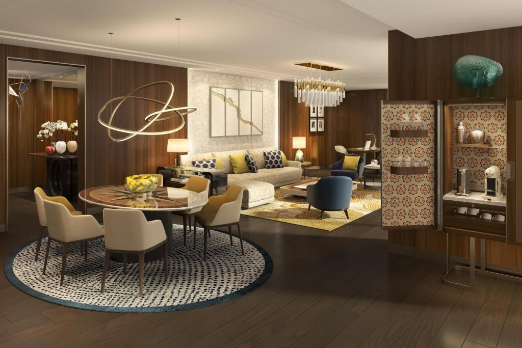 473 кв.м. Розкішний номер складається зі спальні з ліжком king-size, просторої вітальні з зонами відпочинку, обідньою та робочою зонами, кухні, тренажерного залу, гардеробної, великої ванної кімнати з ванною та двомісним паровим душем, гостьової туалетної кімнати, кімнат для прислуги, зимового саду, балконів з панорамним видом на Босфор. Можливе приєднання двох-чотирьох додаткових спалень.