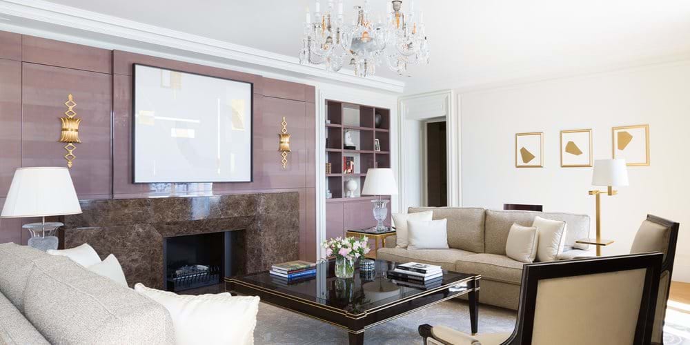 80 кв. м. З спальні, проста вітальня з вогнем і високими стельами, пофарбована люстрою з кристала Баккара, шафа, ванна кімната з видом на озеро і Альпи. панорамний вид на озеро Женева. Номер знаходиться на першому поверсі готелю. Три дорослих.