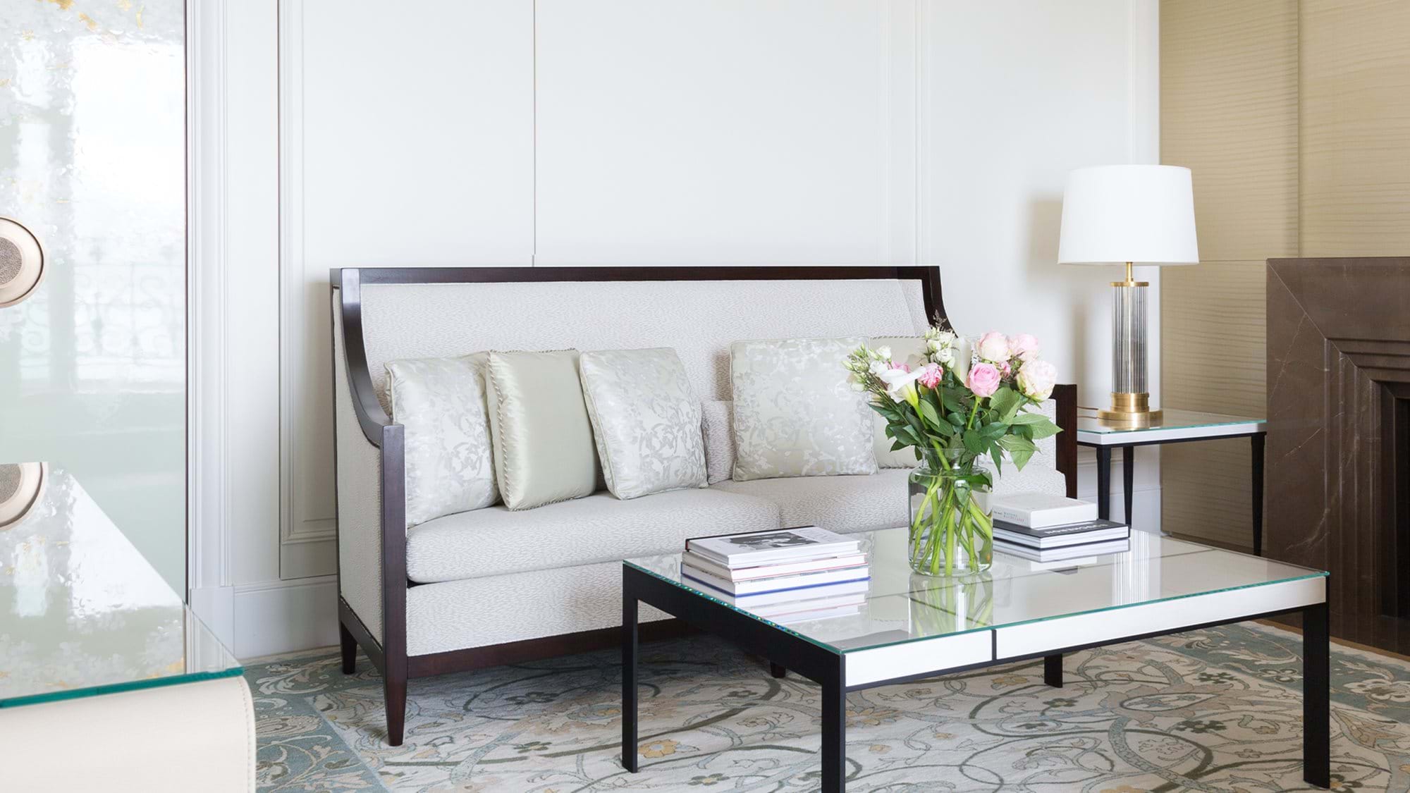 218 кв. м. Номер тарілки складається з спальні, доповненої панелями, вітальнею з вогнем, їдальня з 10-особистісною обідньою зоною, кухнею, harbor, ванної кімнати з ванною та душем, гостьовим туалетом, великою терасою з зоною відпочинку та прекрасним видом на Женева озеро та яхту. Номер можна поєднувати з Woodward Suite.