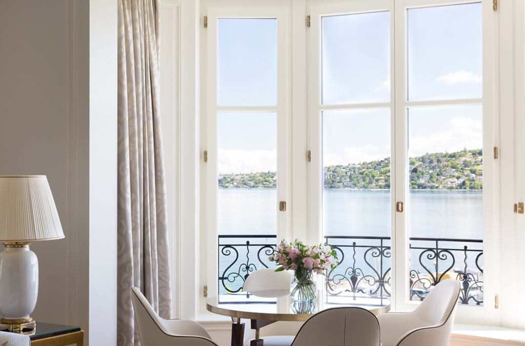66 кв.м. У номері є спальня, вітальня з вогнем, шафа, ванна кімната, гостьовий туалет, три маленькі балкони з видом на озеро Женева. Максимальне розміщення 2 дорослих.