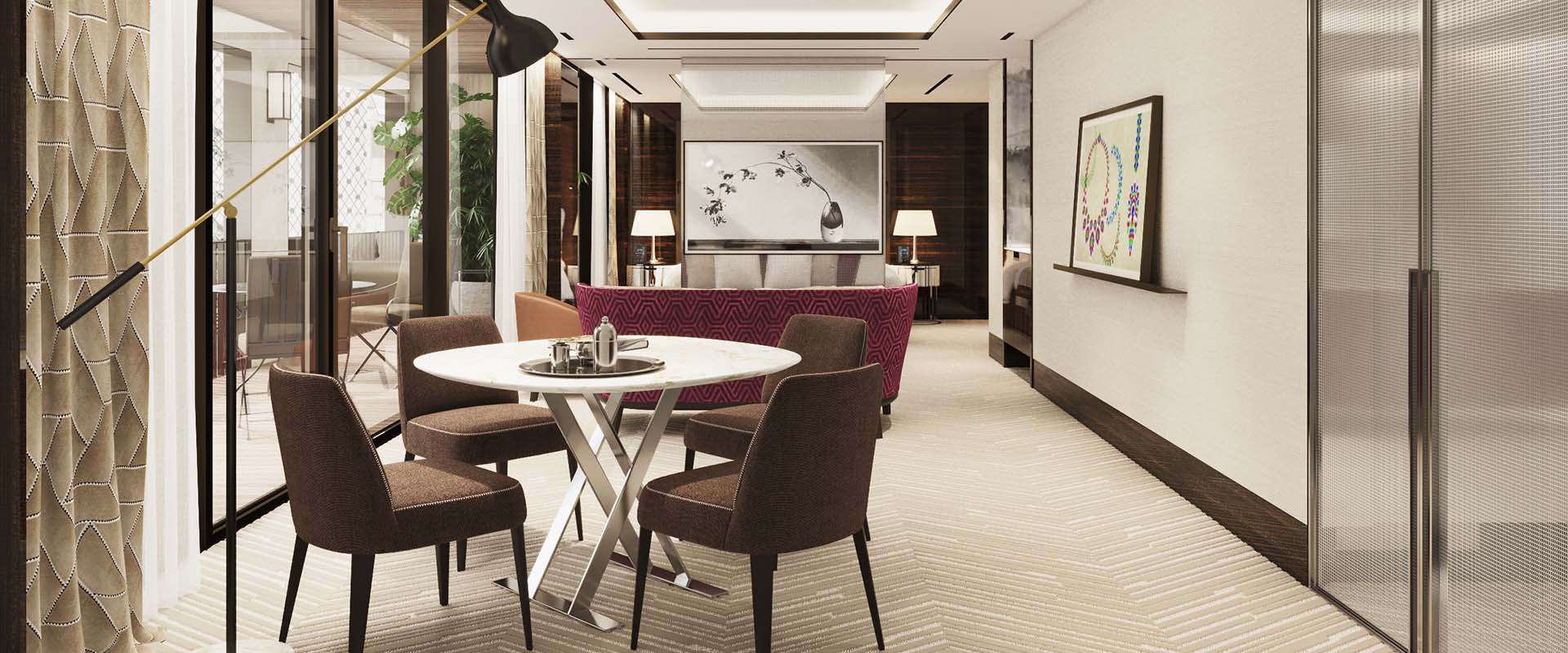 Люкс площею 141 кв.м має ліжко кінг-сайз, хаммам, гардеробну, вітальню, кухню та їдальню. З вікон відкривається краєвид на Ейфелеву вежу.