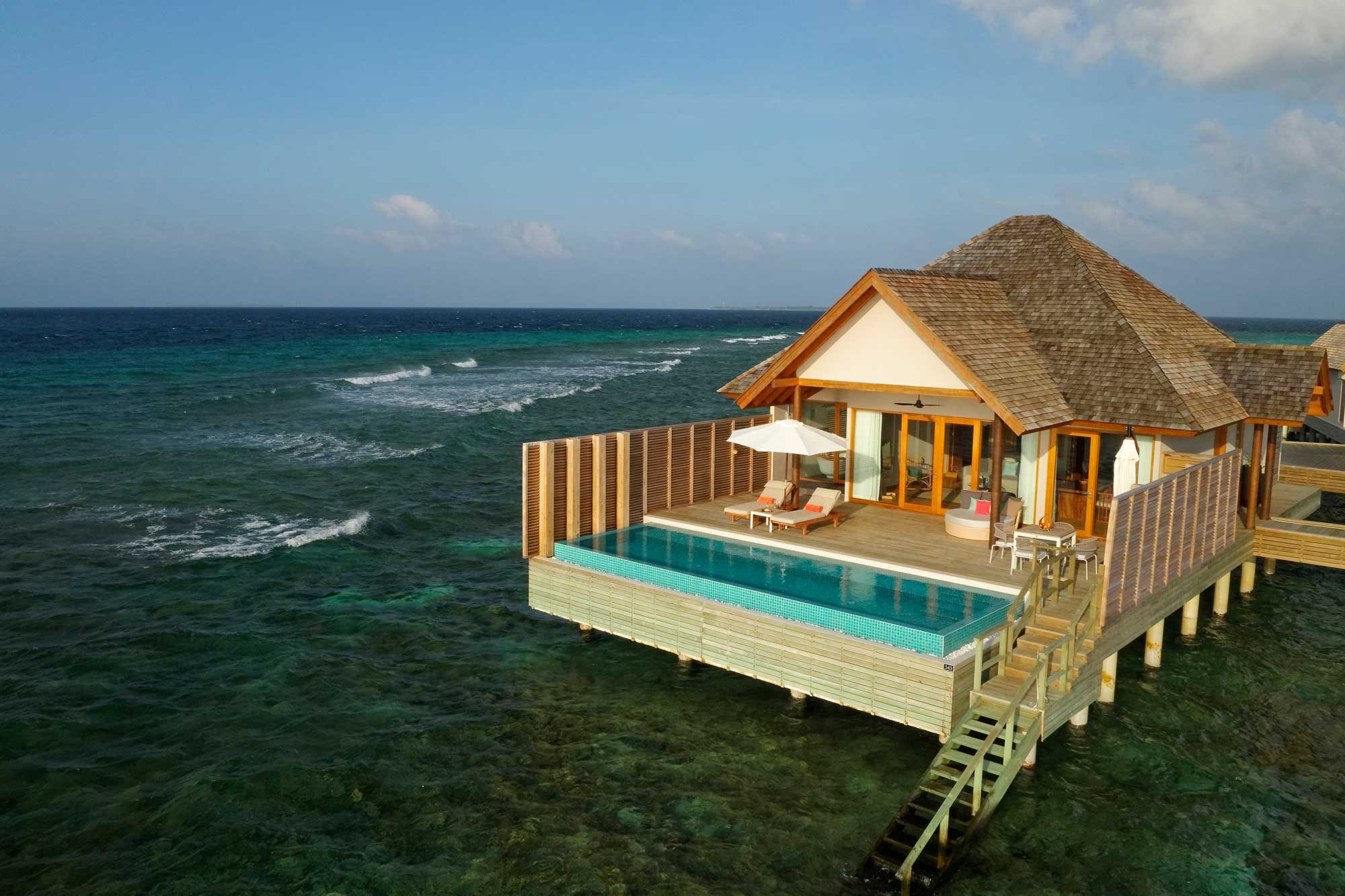 Елегантні та затишні, всі вілли включають натуральні елементи з дерева та каменю, зберігаючи при цьому мінімалістичний дизайн, який ідеально поєднується з мальдівською екосистемою і захоплюючим дух видом на Індійський океан.