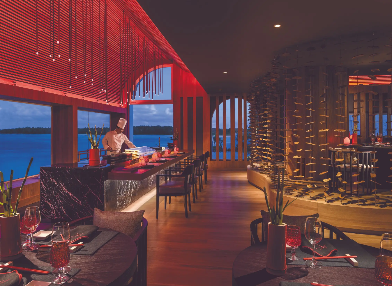 У складках Le Touessrok лежить Kushi, відокремлений притулок, де вишукані чудеса японської кухні одночасно шануються та підносяться.