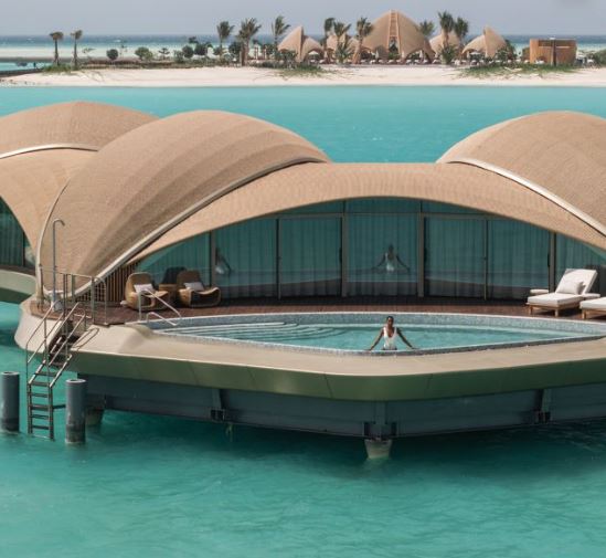 Захищаючи приватне життя і природу і скоєні формою, вілли в Нуджуме відбивають суть розкоші босоніж. Розроблені так, щоб відбивати форму і сяйво морських черепашок, кожна вілла гармонійно поєднується з навколишнім середовищем, що плаває над водою або встановлена на піску. Інтер'єри нерозривно пов'язують землю і море як в естетиці, так і в функціональності за допомогою природних тонів і матеріалів, вікон від стіни до стіни з панорамним виглядом, приватних басейнів з видом на воду та телескопів, щоб поєднатися з кочовою традицією племінної пошуку керівництва у зірок.