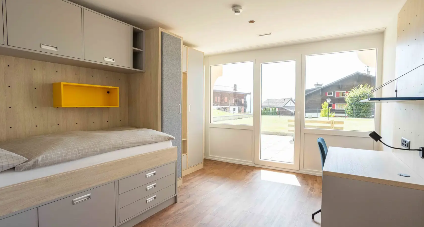 Учасники табору проживають на території кампусу Collège Alpin Beau Soleil у сучасних затишних резиденціях у альпійському стилі.