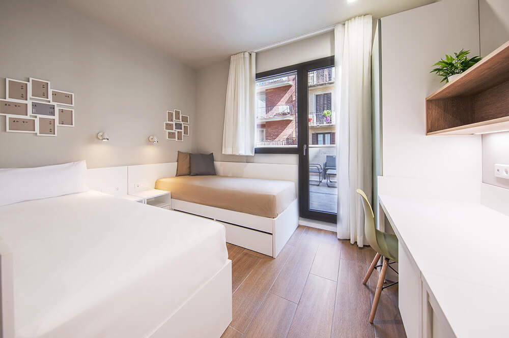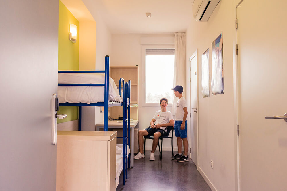 - Проживання в 2-4-місних кімнатах, обладнаних всім необхідним для комфортного відпочинку та навчання.