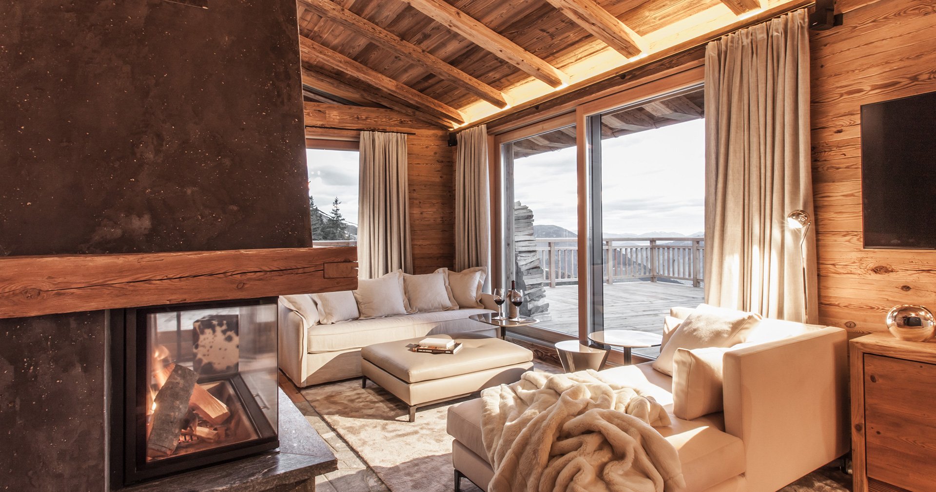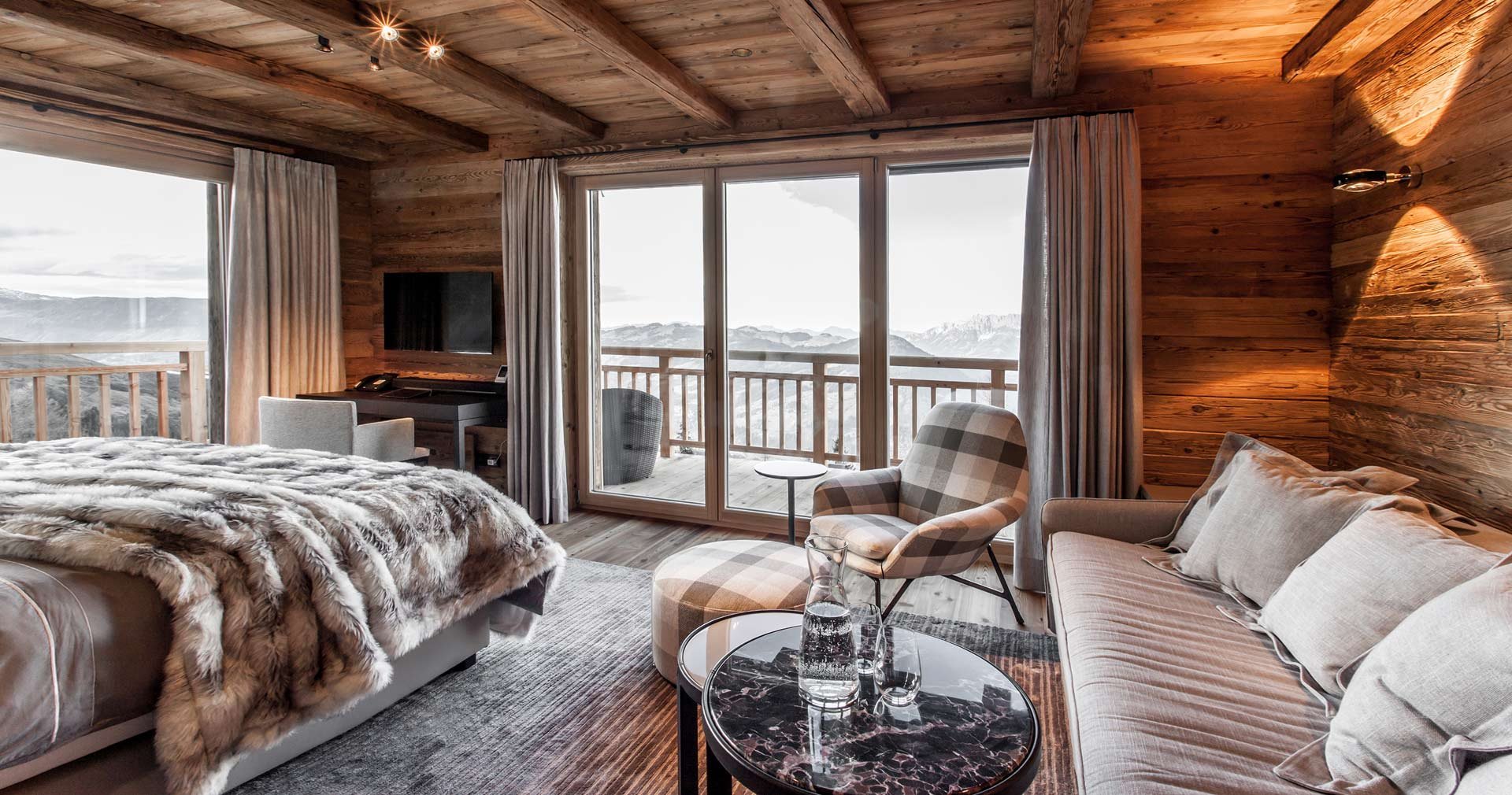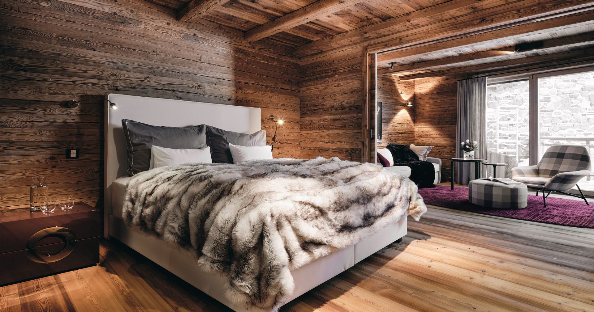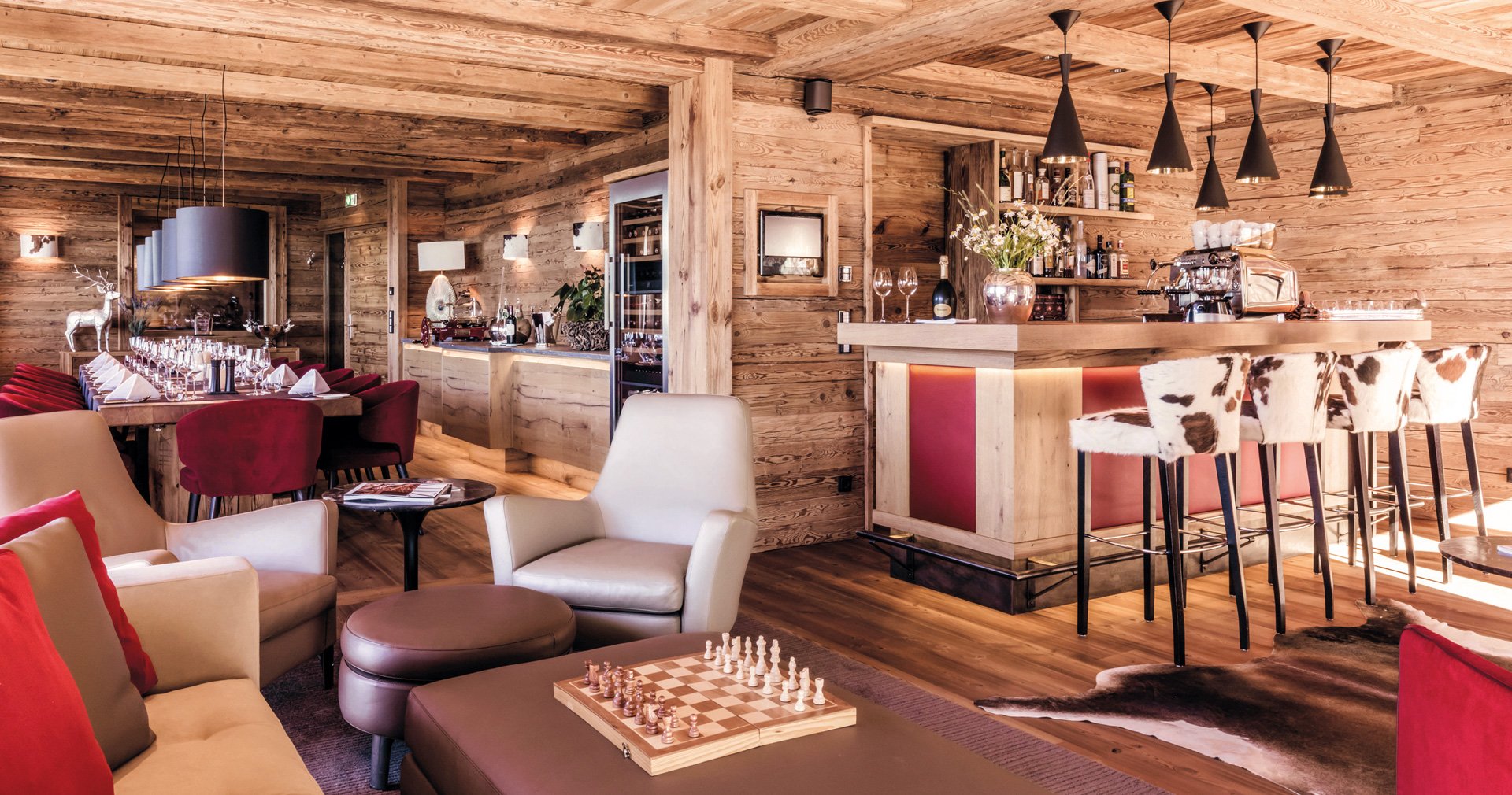 Альпійські житлові світи. Оазиси відпочинку та чистого відпочинку. П'ять ексклюзивних люксів Hahnenkamm Lodge можуть розмістити до 12 осіб та вражають своїм преміальним інтер'єром.