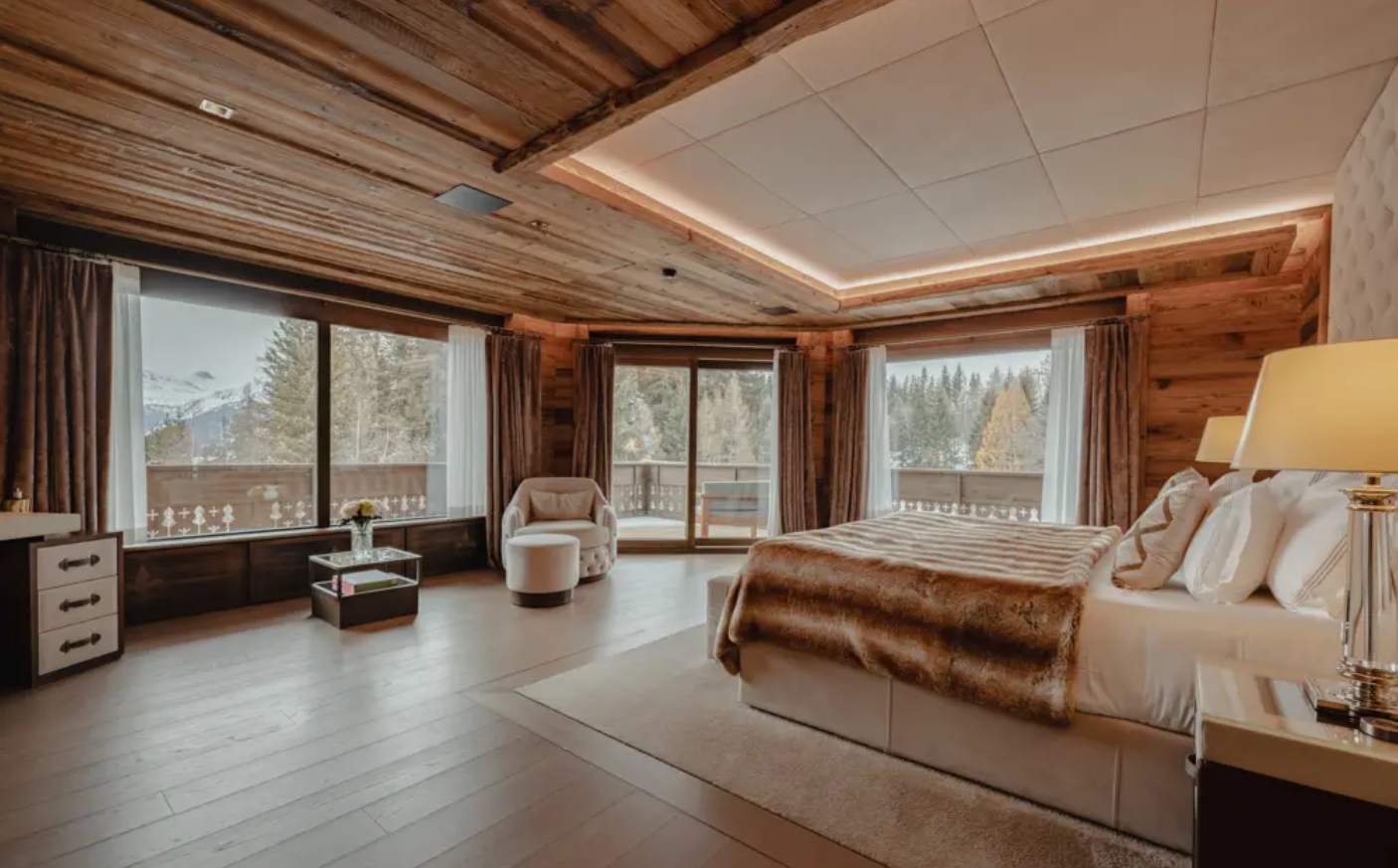 Це самотня гірська резиденція, що розкинулася серед лісу на тихому плато План-Майєн. Вона складається з двох суміжних шале з видом на великий басейн із підігрівом, а також має першокласний СПА – центр площею 1000 кв. м, власний кінотеатр, сигарний лаунж і неперевершений сервіс не гірший за готель класу люкс.