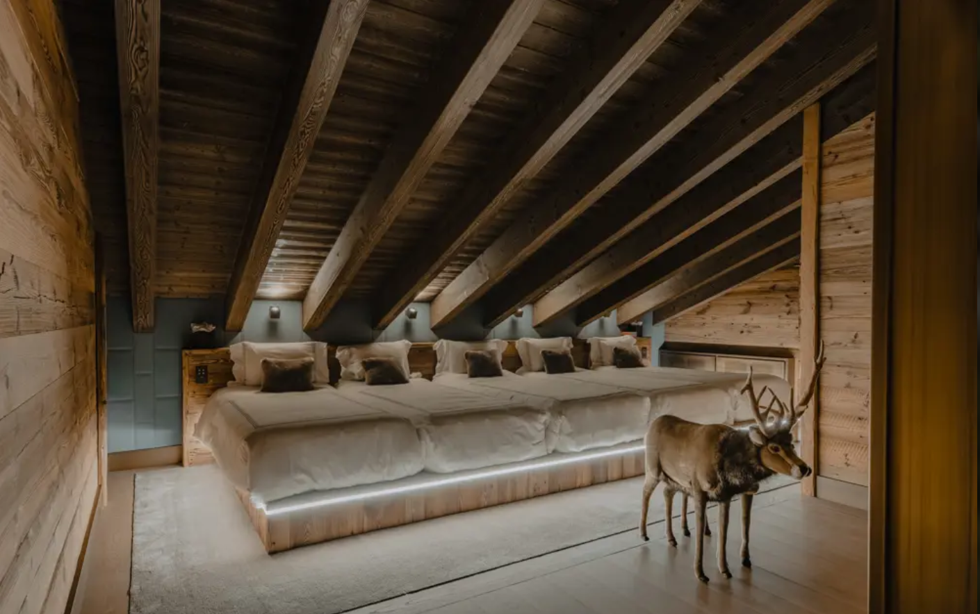 В одному шалі — 8 майстер-сьютів плюс два ігрові («sleepover suites») для дітей; у другому шалі – 6 сьютів, включаючи власну кухню та бібліотеку.