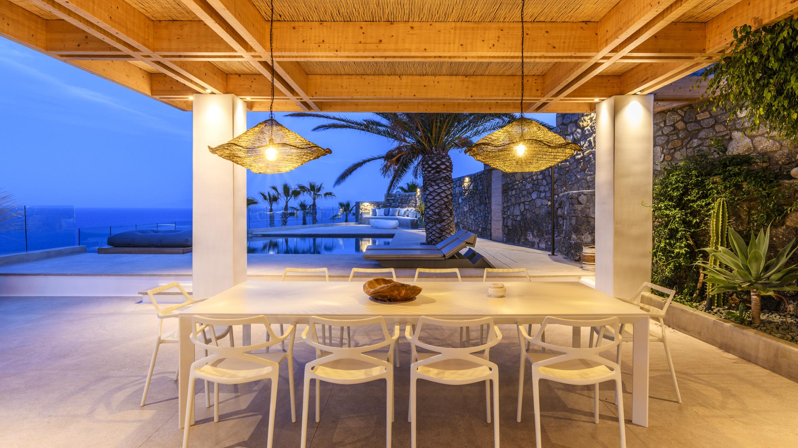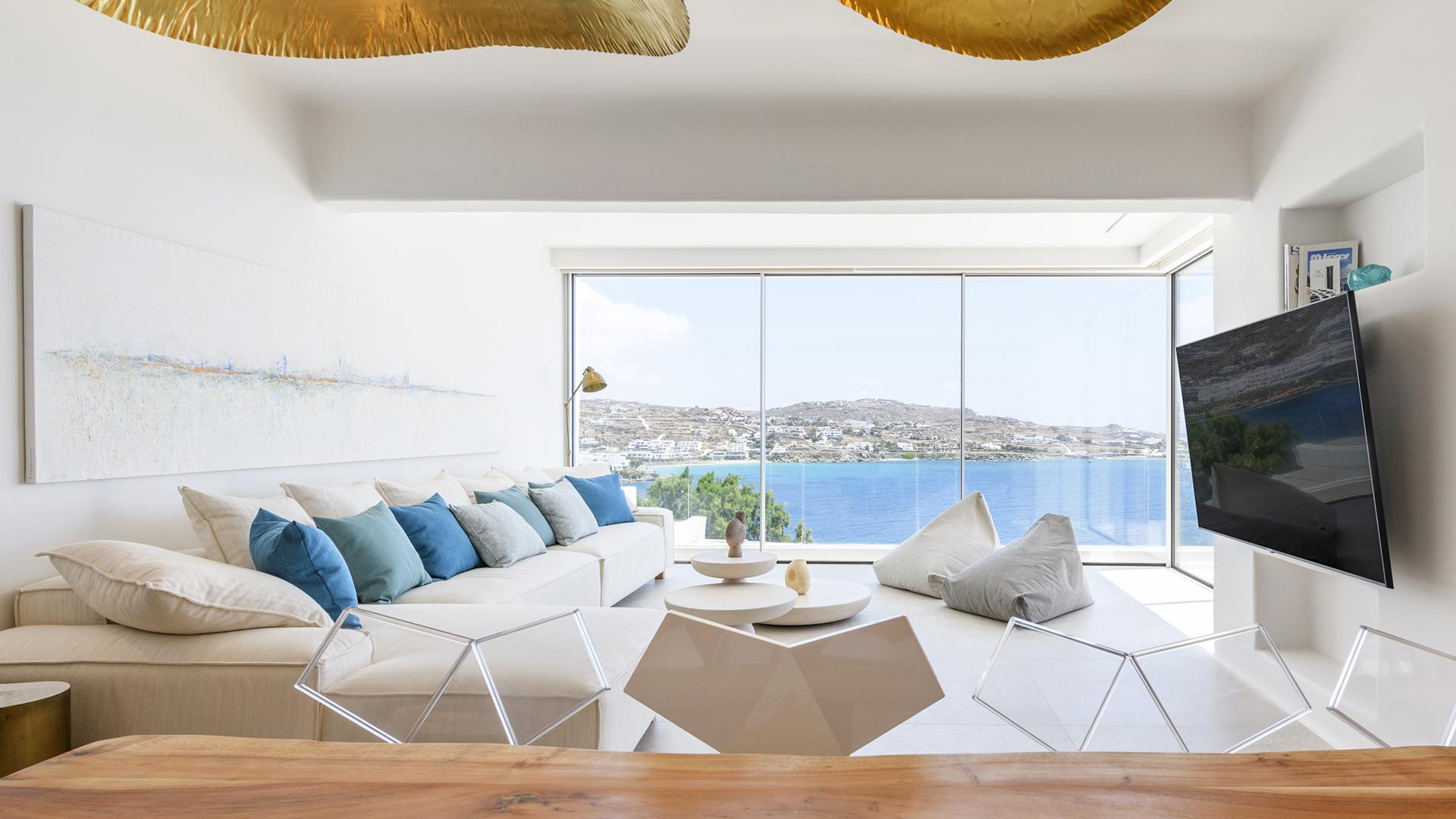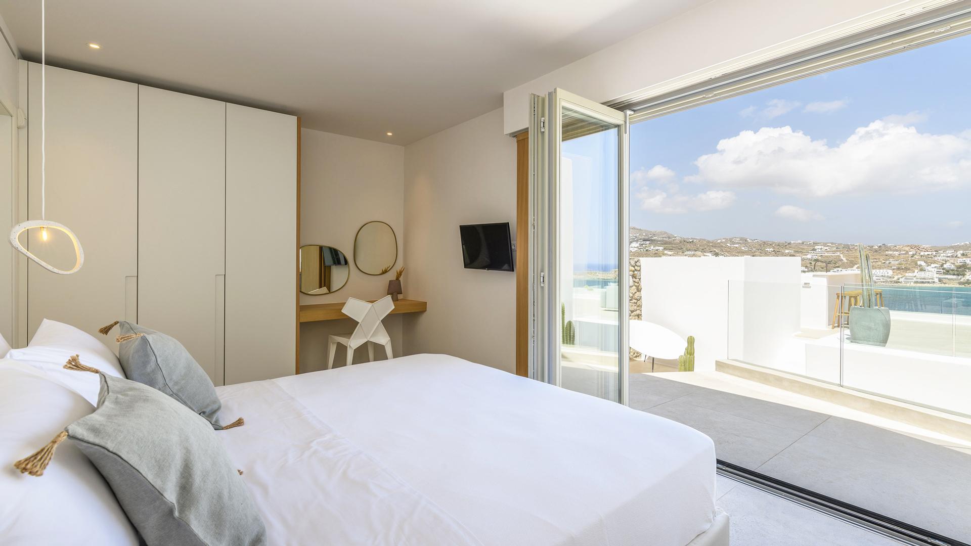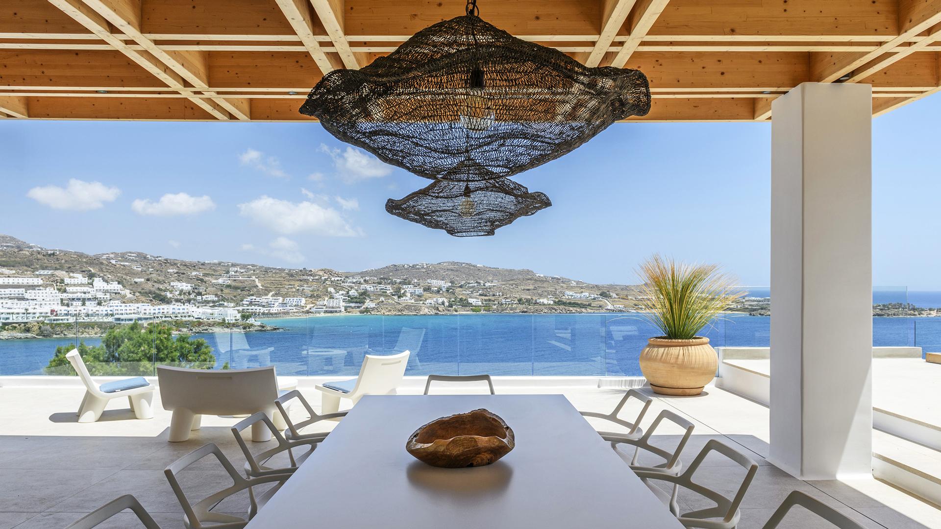 Вілла займає південний стан на схилі Agios Lazaros, з видом на Егейське море. До найпопулярніших пляжів (Psarou, Platis Gialos, Ornos) – кілька хвилин їзди; до центру Міконоса – близько 4 км.