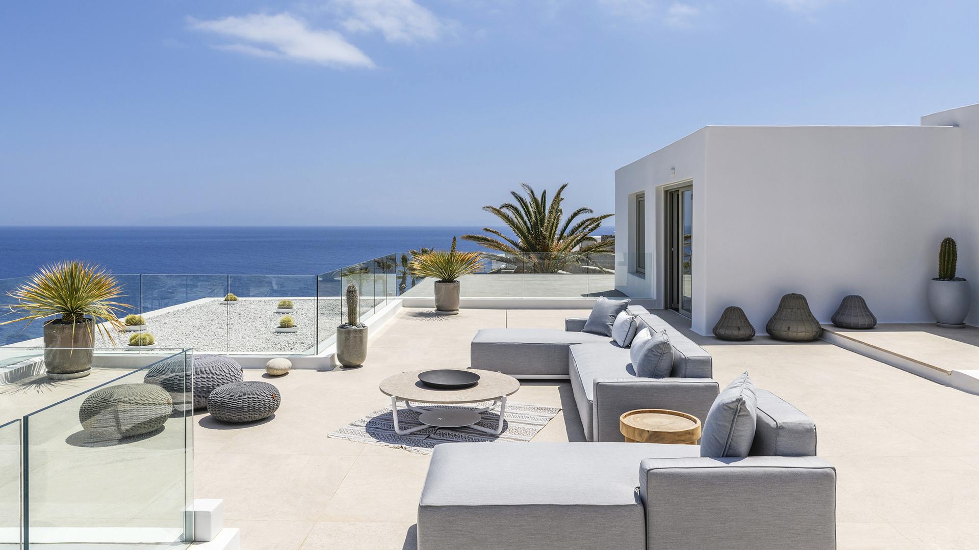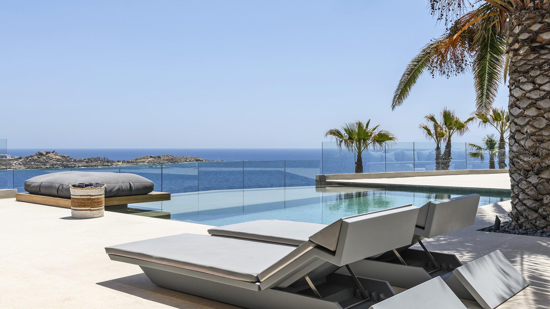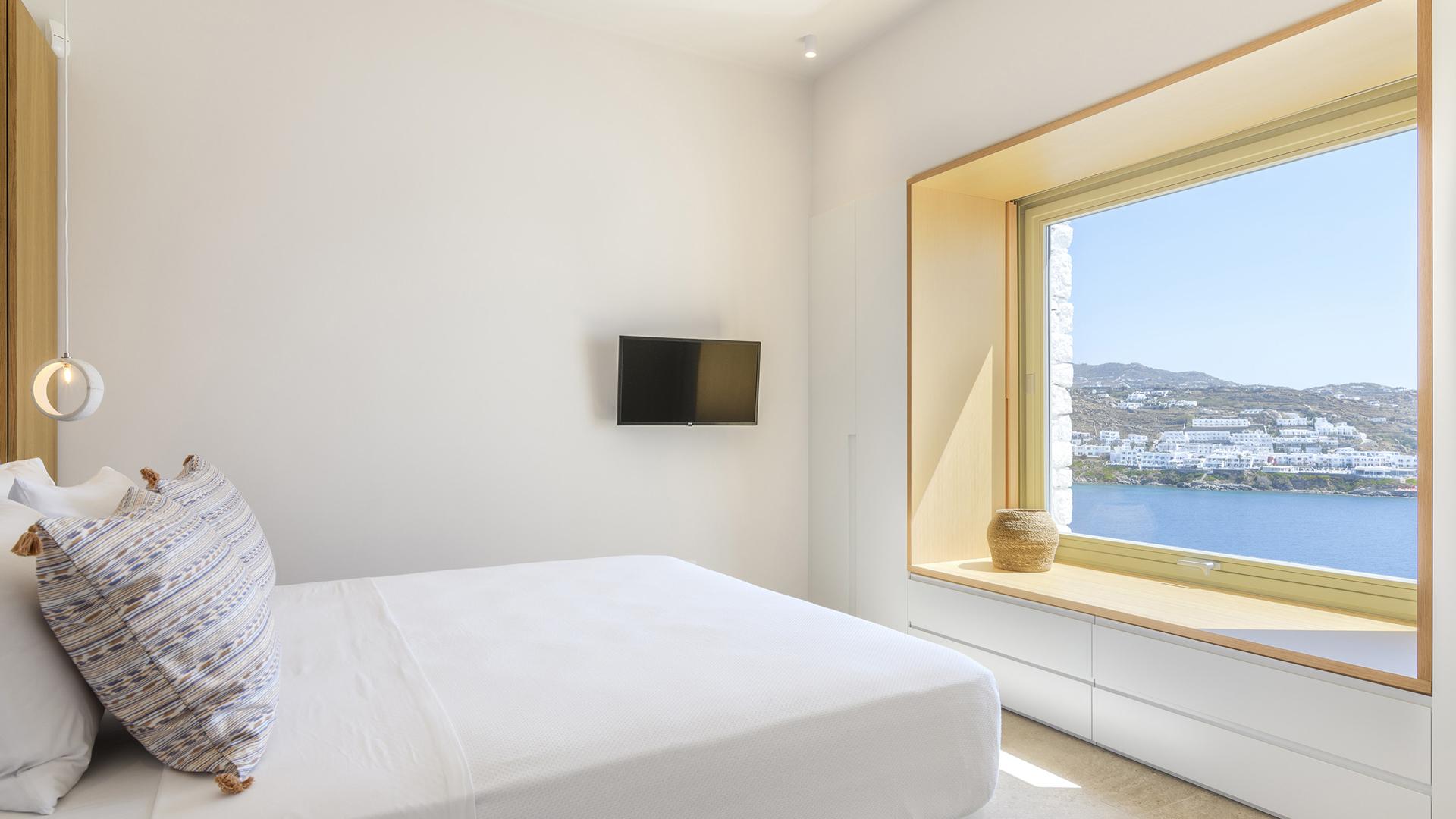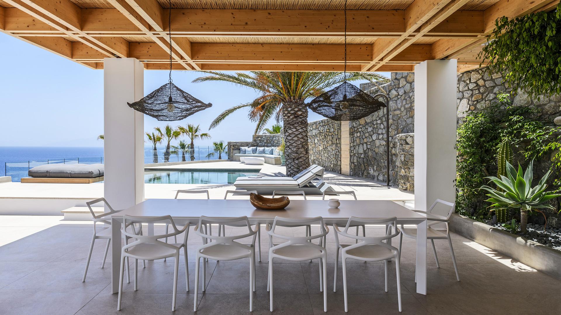 Вілла займає південний стан на схилі Agios Lazaros, з видом на Егейське море. До найпопулярніших пляжів (Psarou, Platis Gialos, Ornos) – кілька хвилин їзди; до центру Міконоса – близько 4 км.