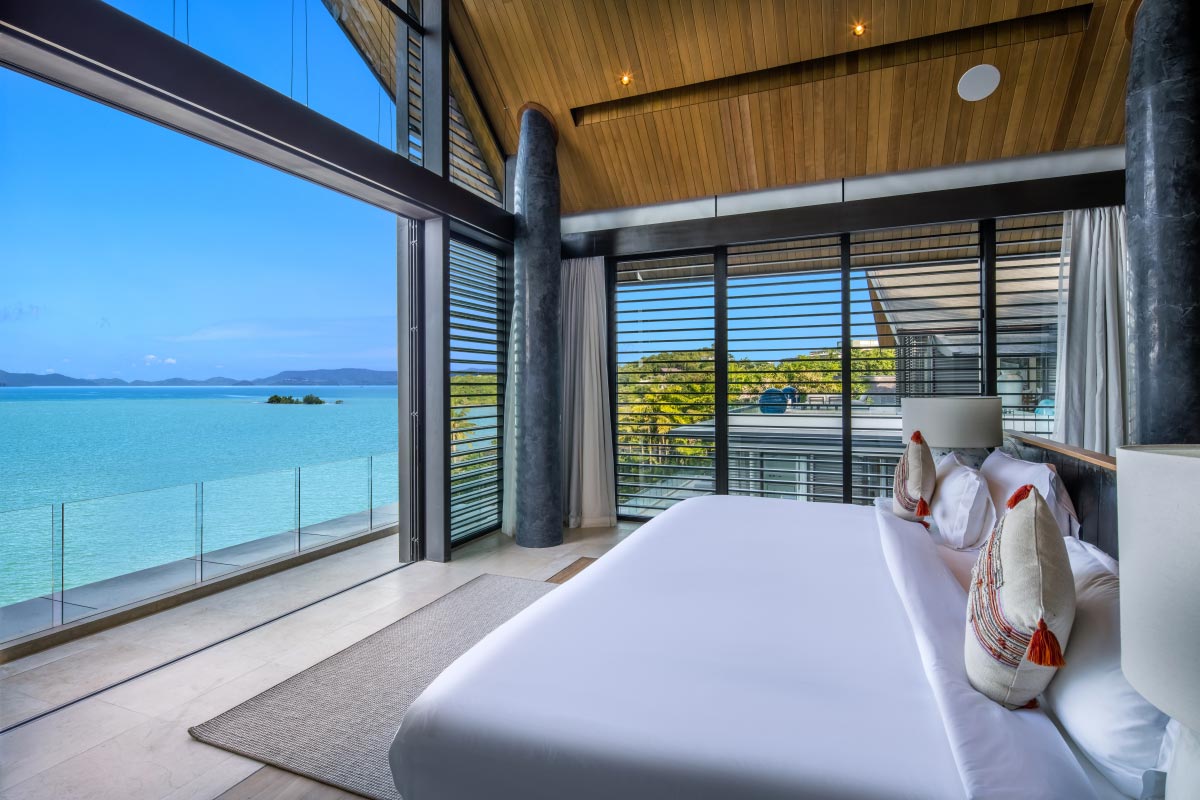 8 спалень з ванними кімнатами ("ensuite"), включаючи майстер-сьют та сім гостьових спалень; більшість спалень мають вид на море та балкони або тераси.