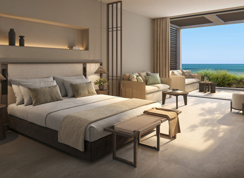 Номери різні на кшталт: стандартні номери, сімейні номери, сьюти, вілли та колекція Deluxe, в якій є версії з власними басейнами або садами. Вид з кімнат може бути на морі, сад або на приватний басейн.