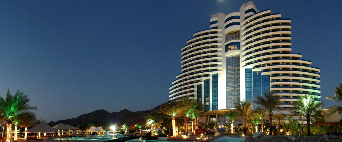 Готель Le Méridien Al Aqah Beach Resort розташувався в підступаючих до самого Індійського океану горах Хаджар, на широкому пляжі. Його велична біла будівля з панорамними вікнами і чіткими обрисами передає теденції сучасної архітектури.