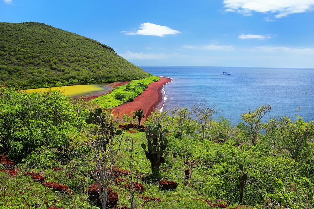 На Галапагосі ви побачите пляжі із чорним, червоним, світлим і навіть зеленим піском! Наприклад, "марсіанський" червоний колір піску на острові Рабіда обумовлений високим вмістом заліза в лаві, а зелений в Корморант-Пойнт на острові Флореана і в бухті Баллена, або Китової, на острові Санта-Крус - скупченням кристалів олівіна, також вулканічної природи.
