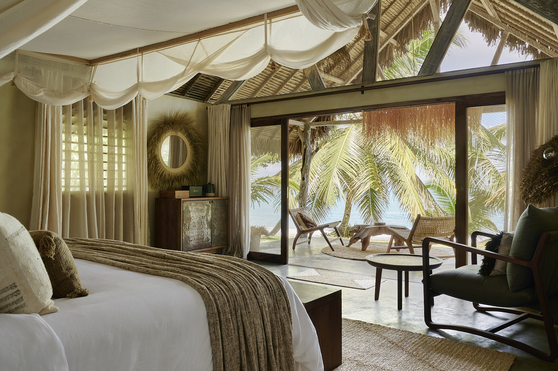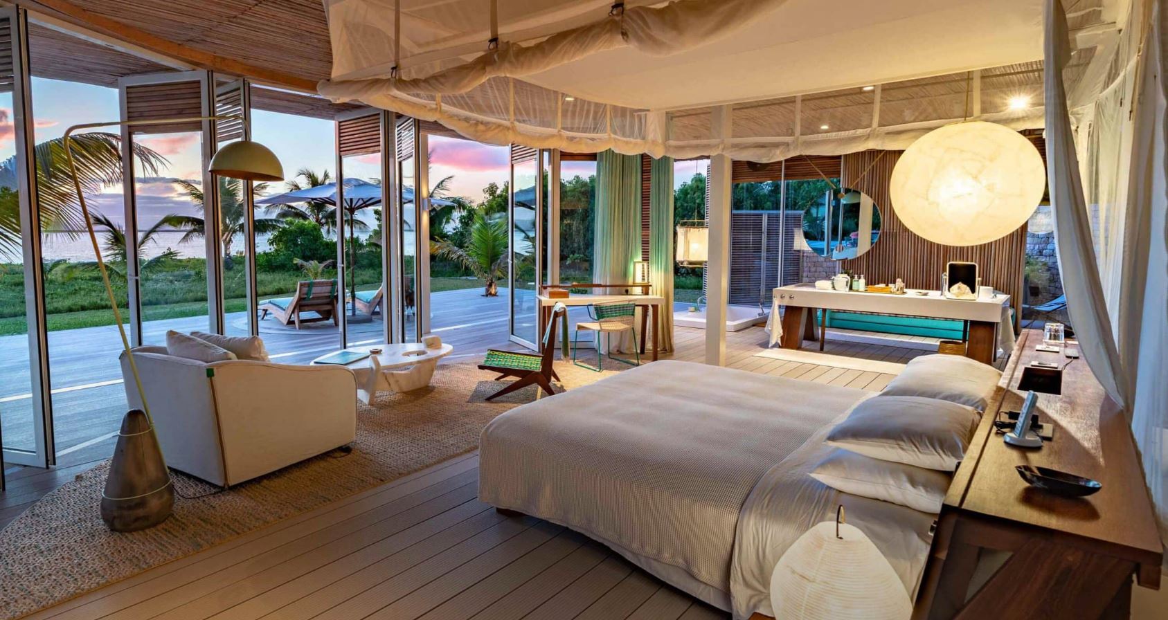 У будівництві чотирнадцяти пляжних вілл використовувалися лише природні матеріали. Вони мають 1–3 спальні, власні басейни, кухні, робочі кабінети, які легко переобладнати в дитячу. Гостям надаються цілодобові послуги батлера, електробаггі та велосипеди. Вілли можна орендувати окремо або викупити на якийсь час весь острів (максимальна кількість гостей 32).