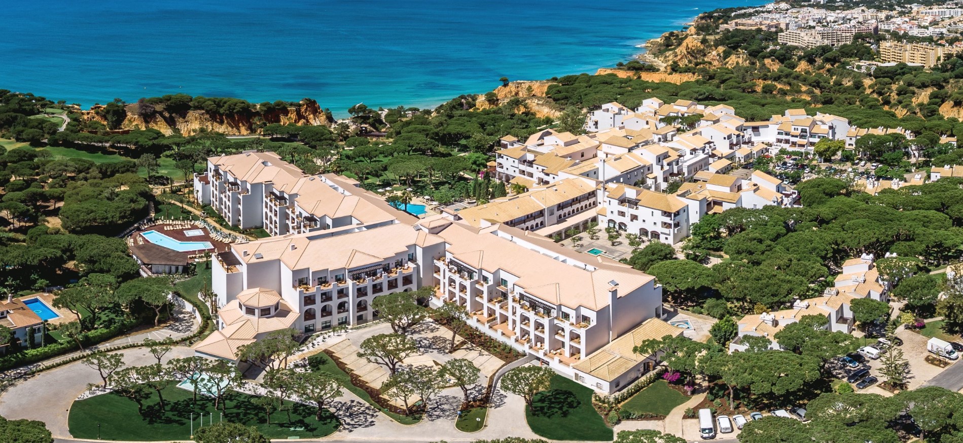 Один із найпрестижніших курортів Алгарве, розташований на скелі з видом на Praia da Falésia. Після масштабної реновації готель отримав оновлений стиль, але зберіг атмосферу високого рівня: 217 номерів, 8 басейнів, спа, теніс, гольф та дитячий клуб.